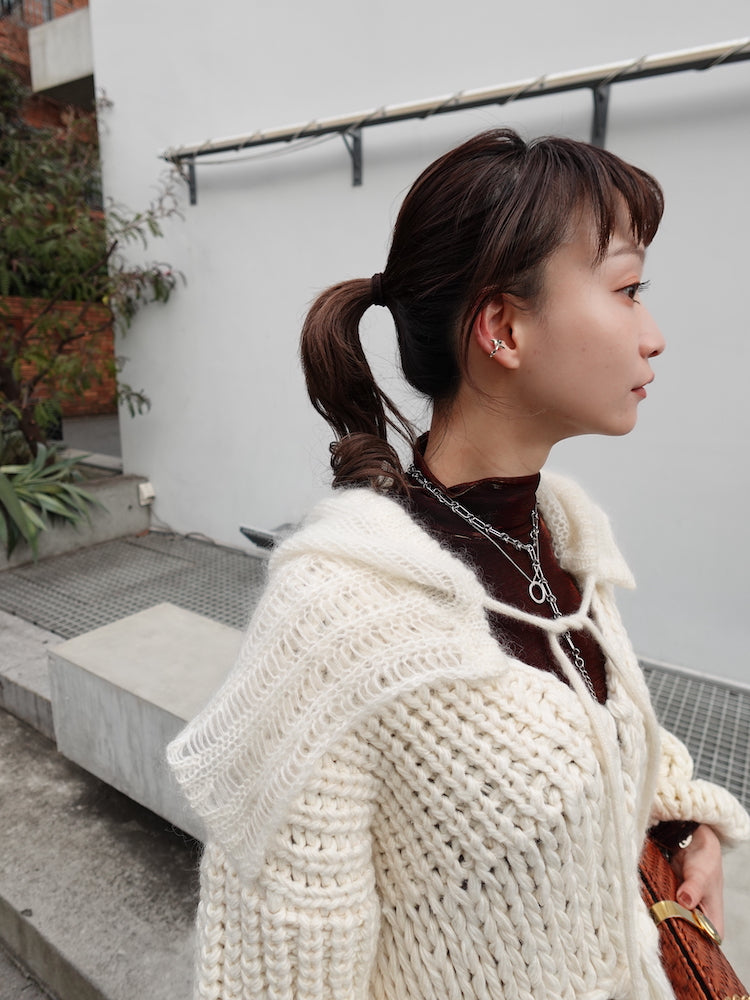 「このカーディガンは、手編みならではの表情がすごくかわいいなと思って一目惚れでした!