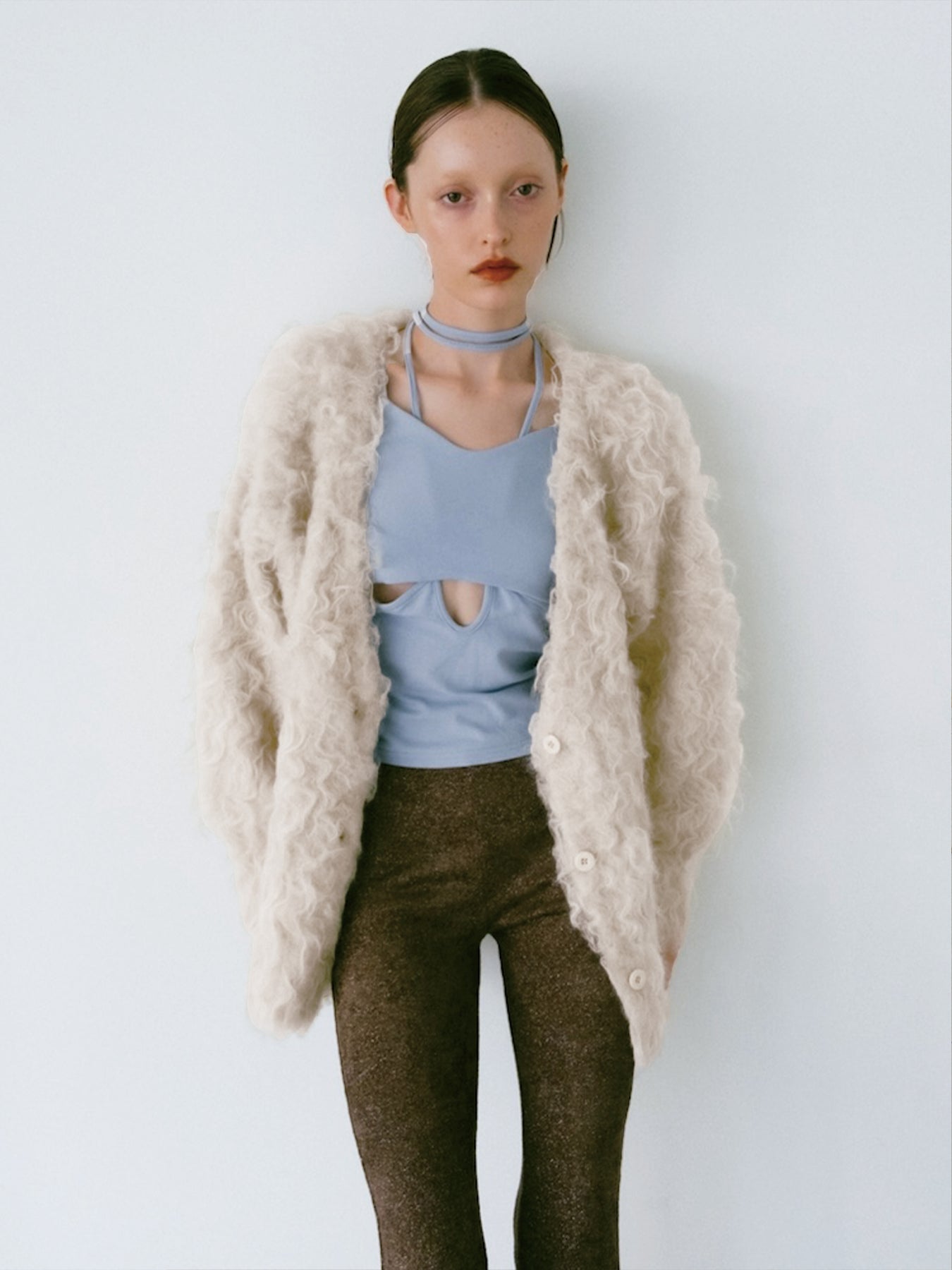 光の加減で陰影をつくる立体的な毛並みが、存在感と華やかさをプラス。