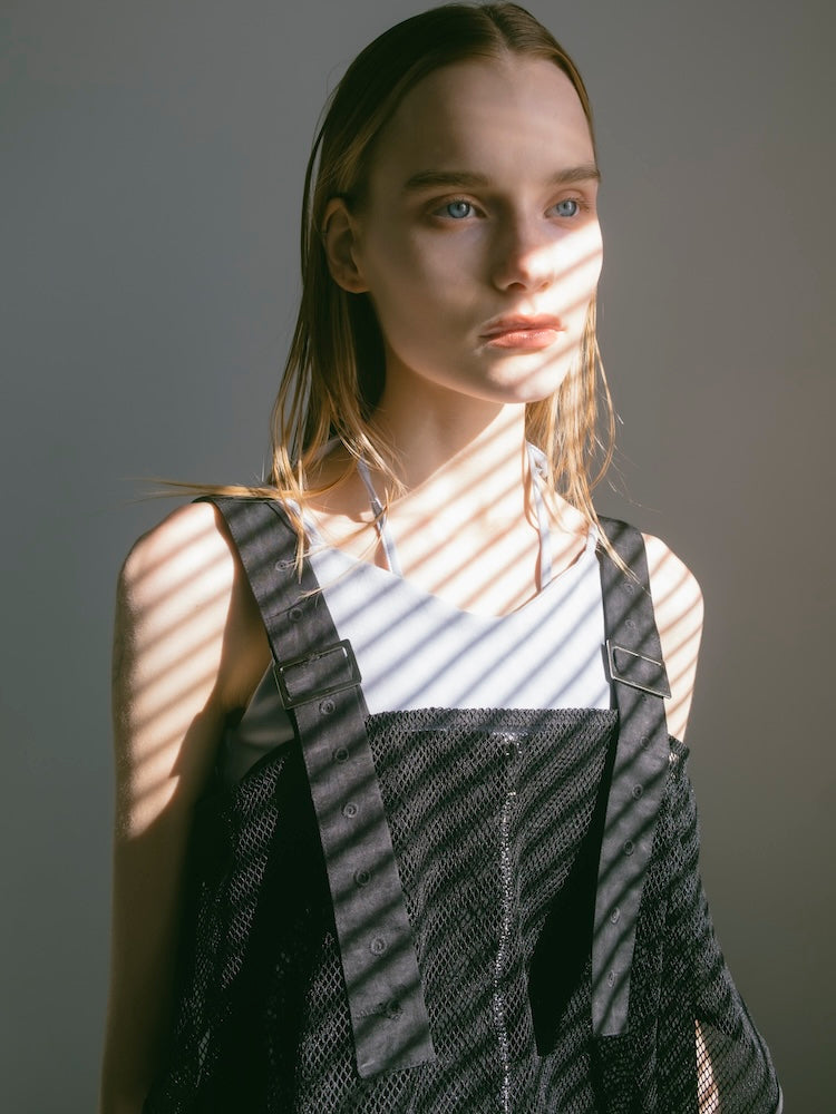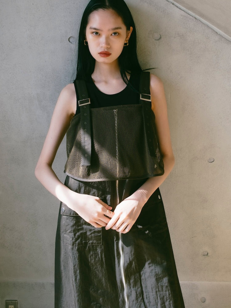 軽やかな透け感が魅力のメッシュトップは、装いに奥行きとモードなニュアンスをプラス。