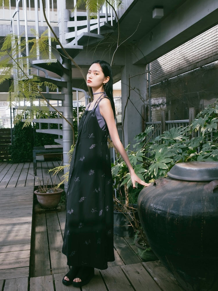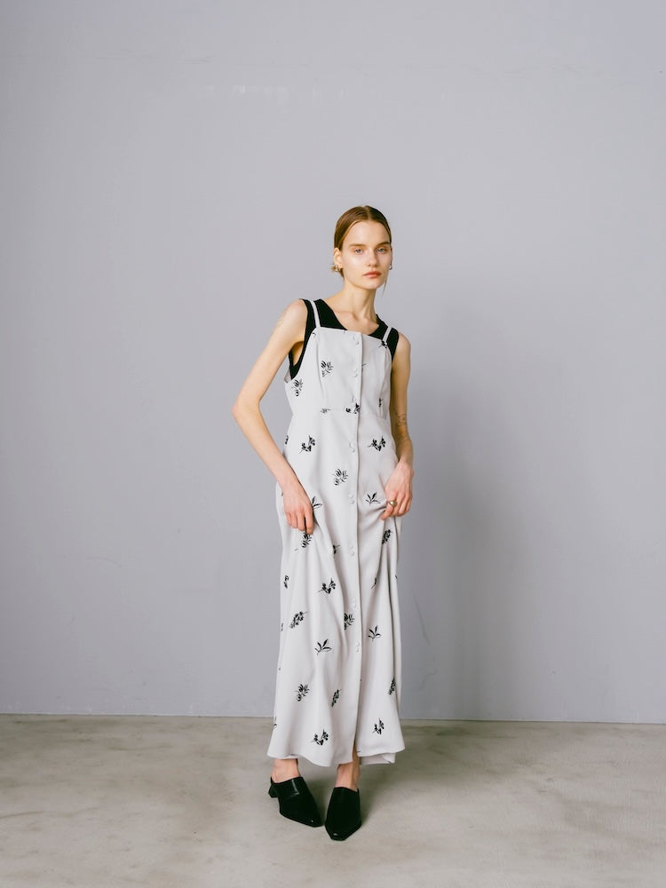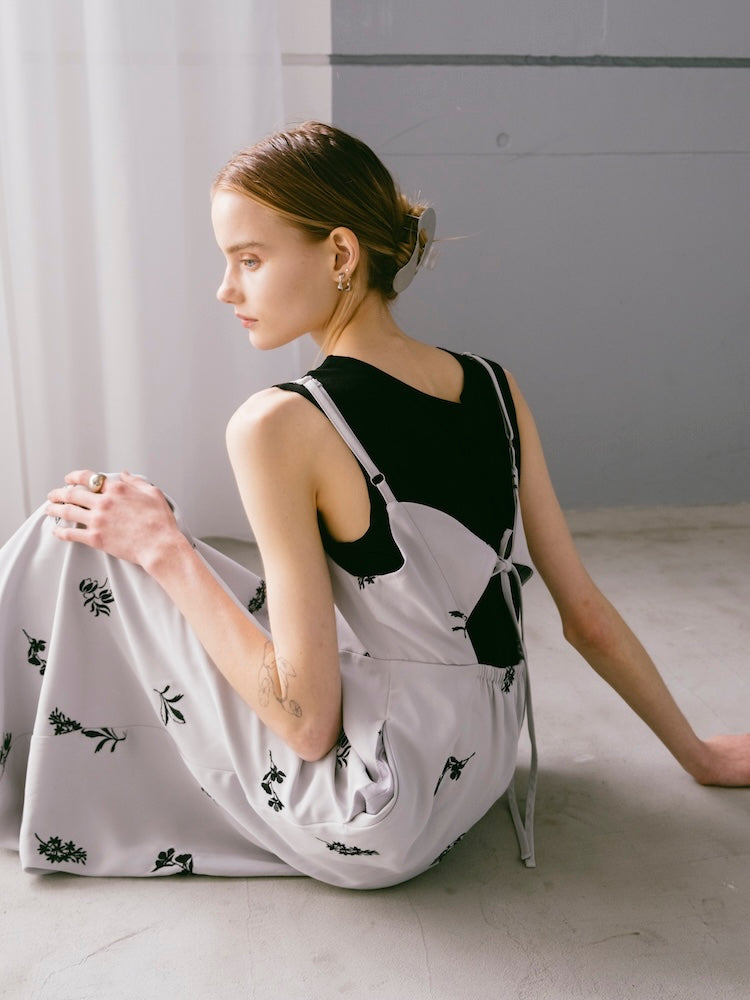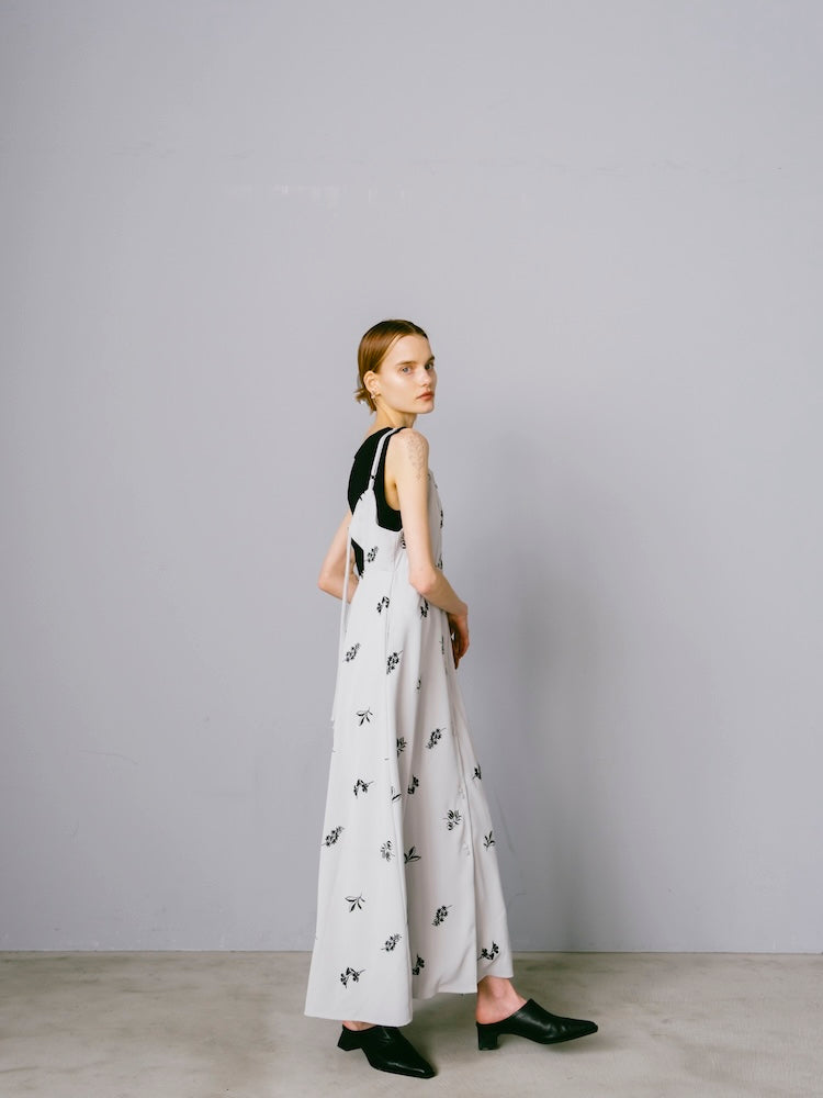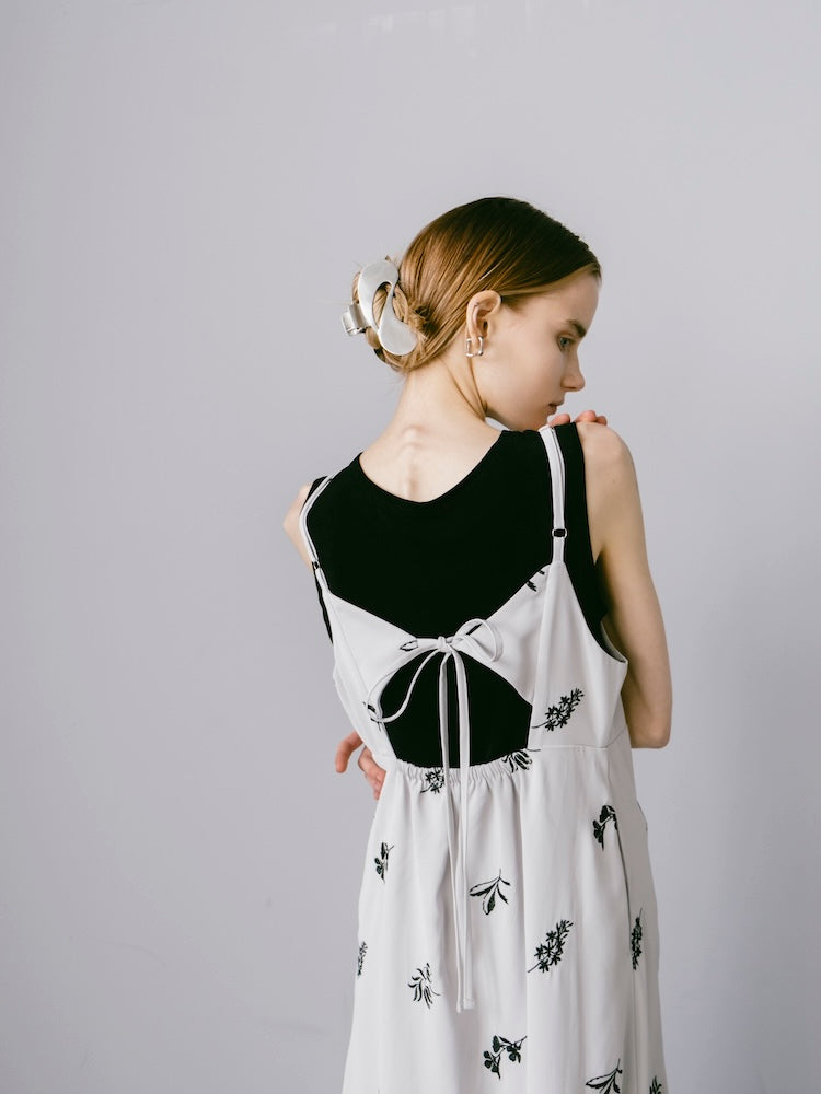 saharaオリジナルの刺繍デザインが静かな存在感を放つキャミソールワンピース。