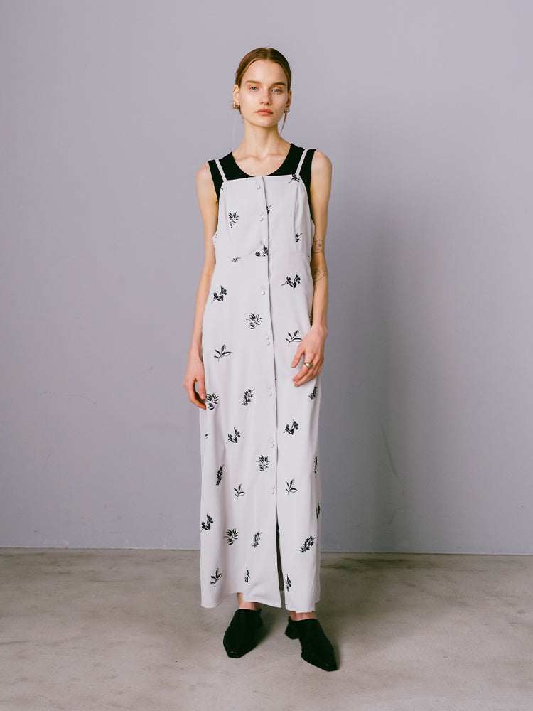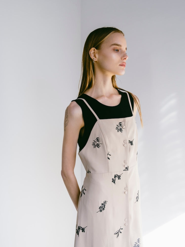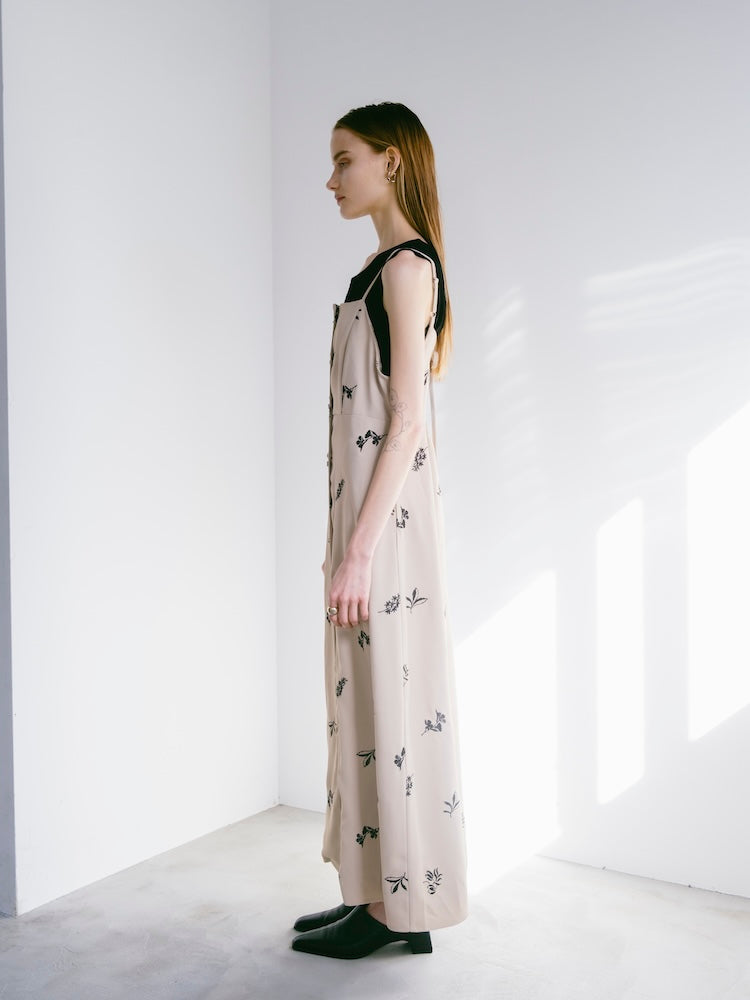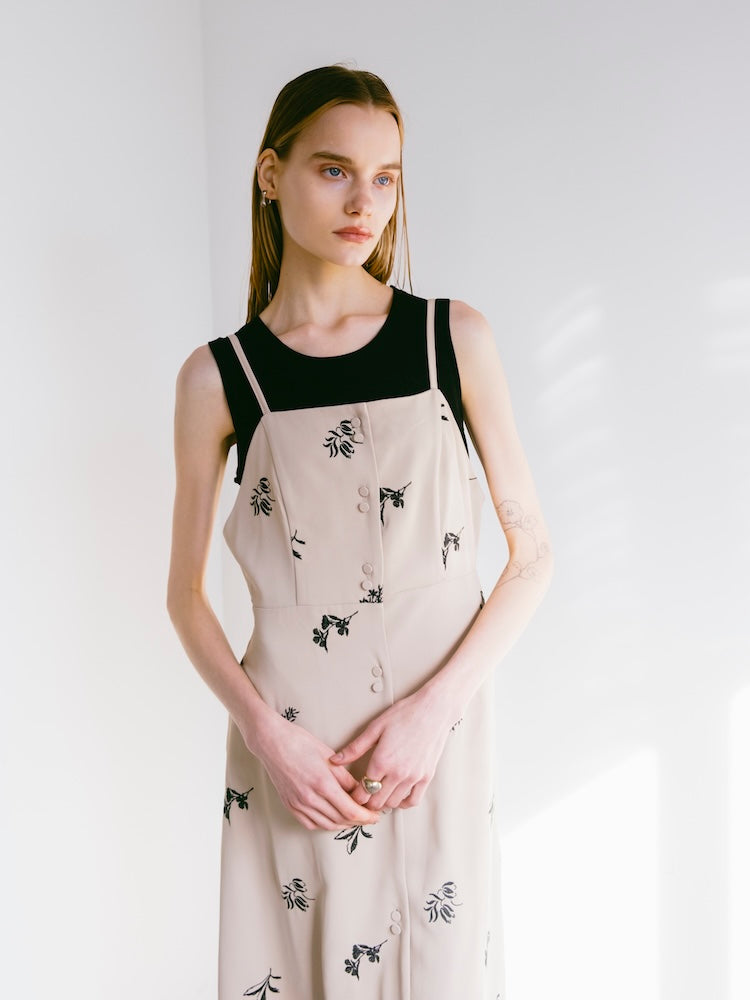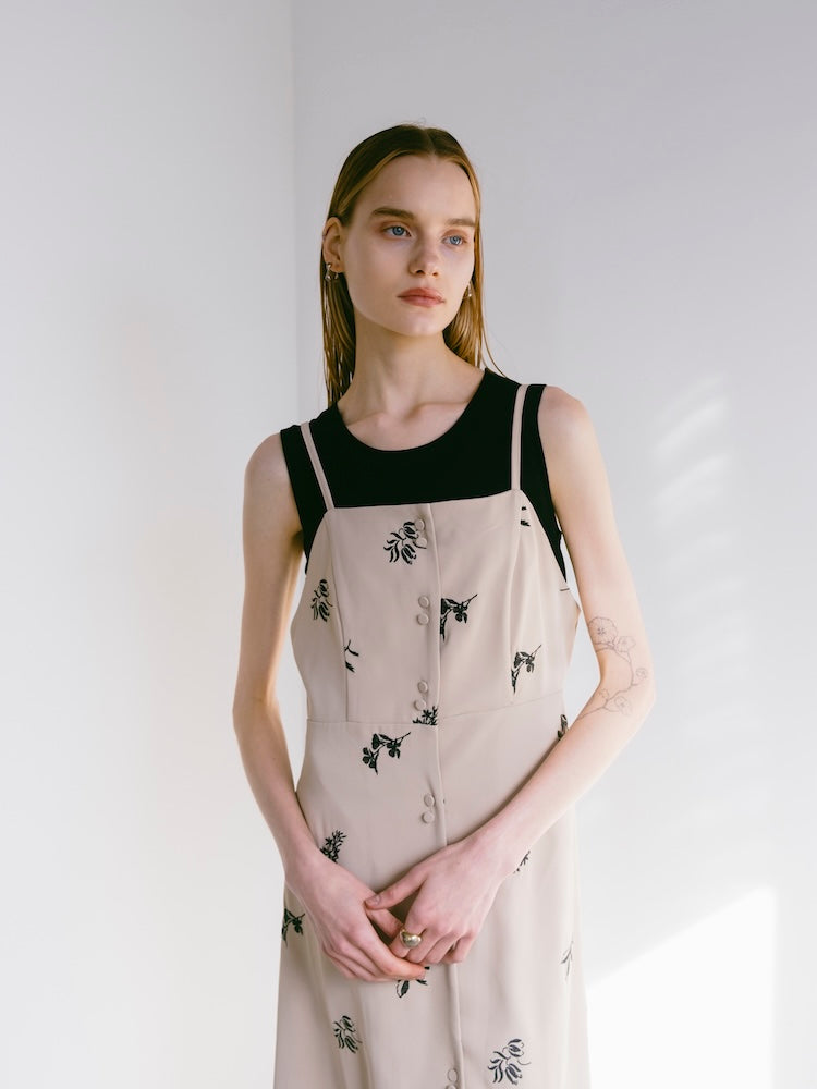 saharaオリジナルの刺繍デザインが静かな存在感を放つキャミソールワンピース。