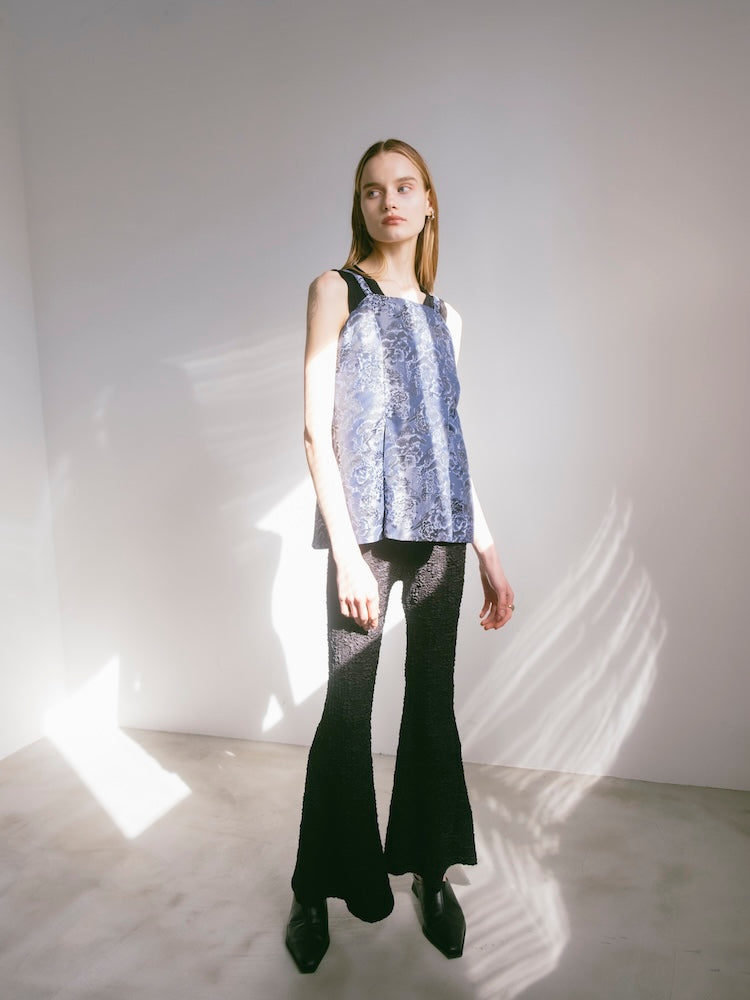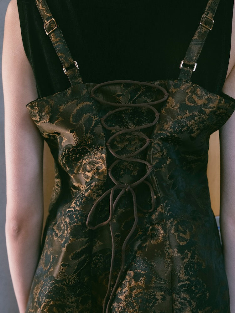 シノワズリムードの漂うジャガード織りが、凛とした大人の佇まいを演出するビスチェ。