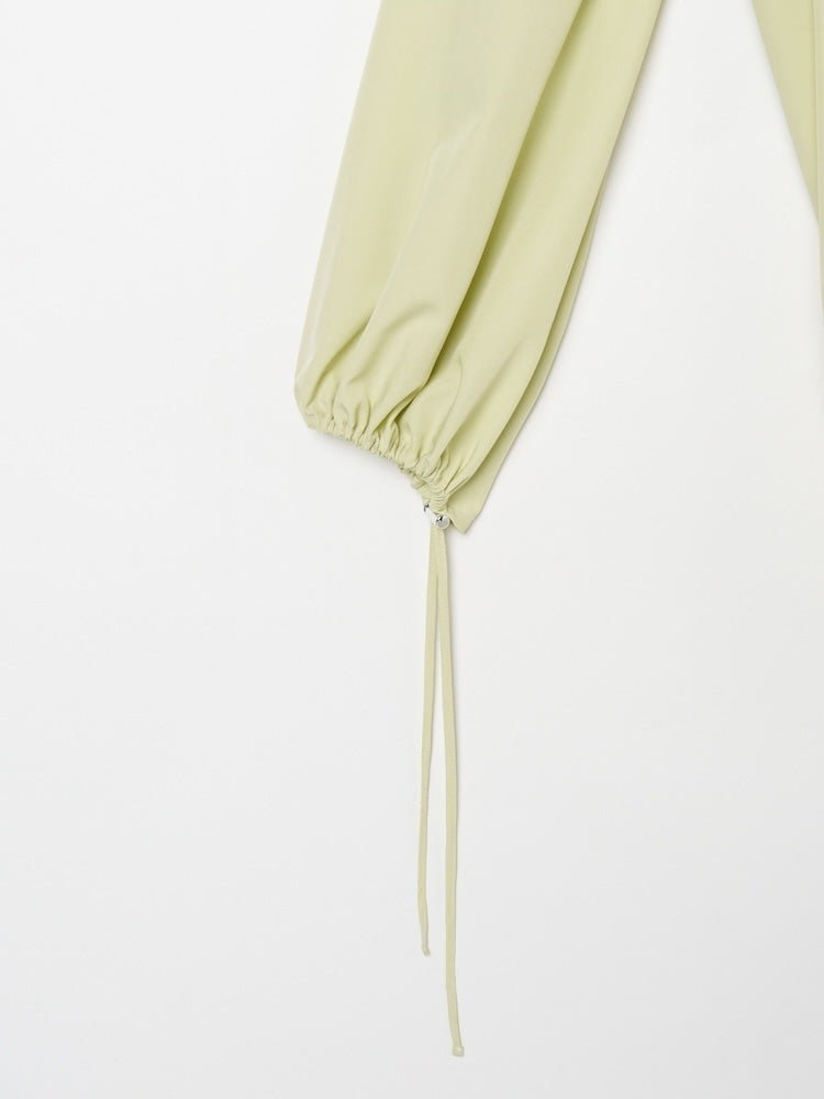 袖口の紐を絞ることでシルエットの変化を楽しめ、スタイリングに合わせたアレンジが可能です。一枚でさらっと着るのはもちろん、ベストやビスチェを重ねたスタイリングもおすすめ。