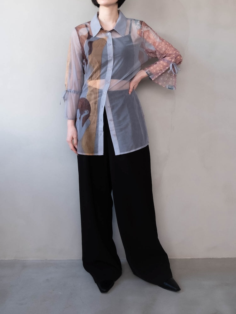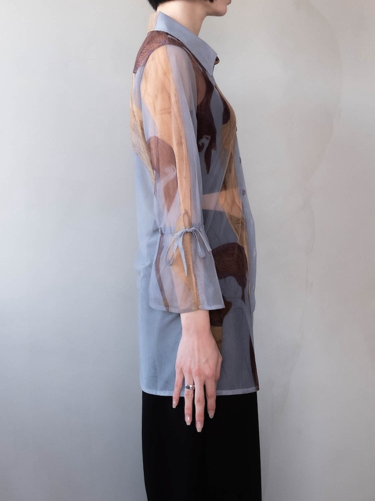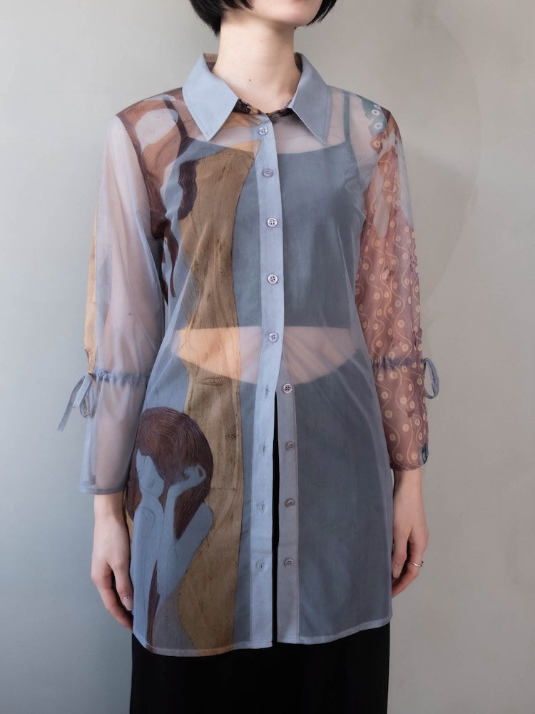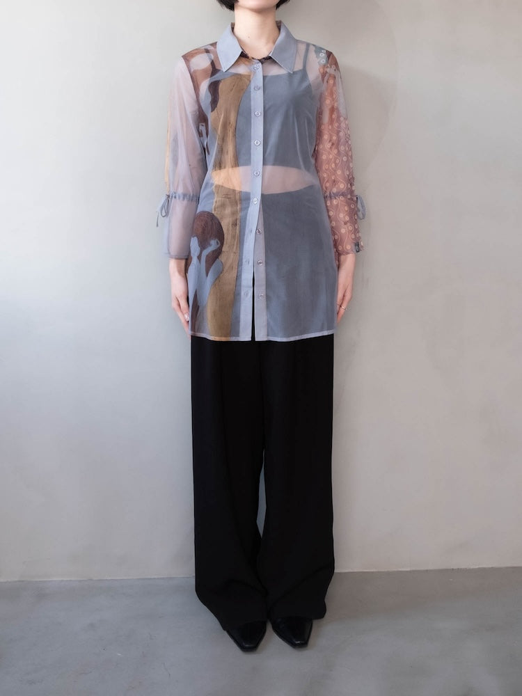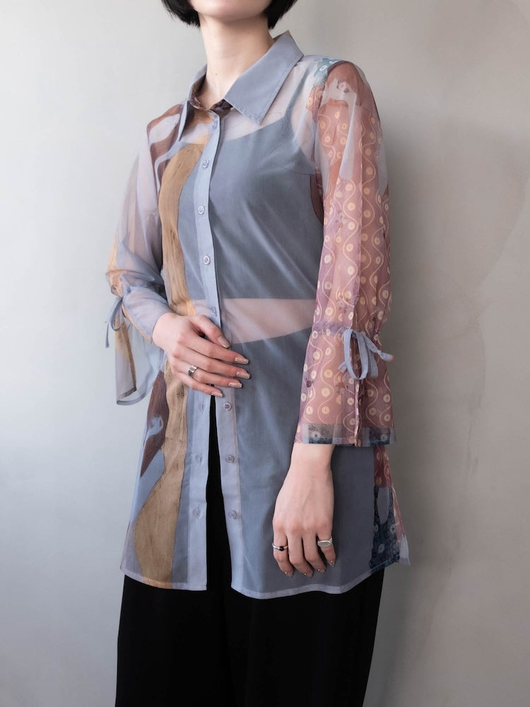 絵画作品を落とし込んだプリントが印象的な、シアーシャツ。