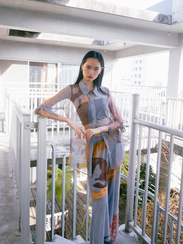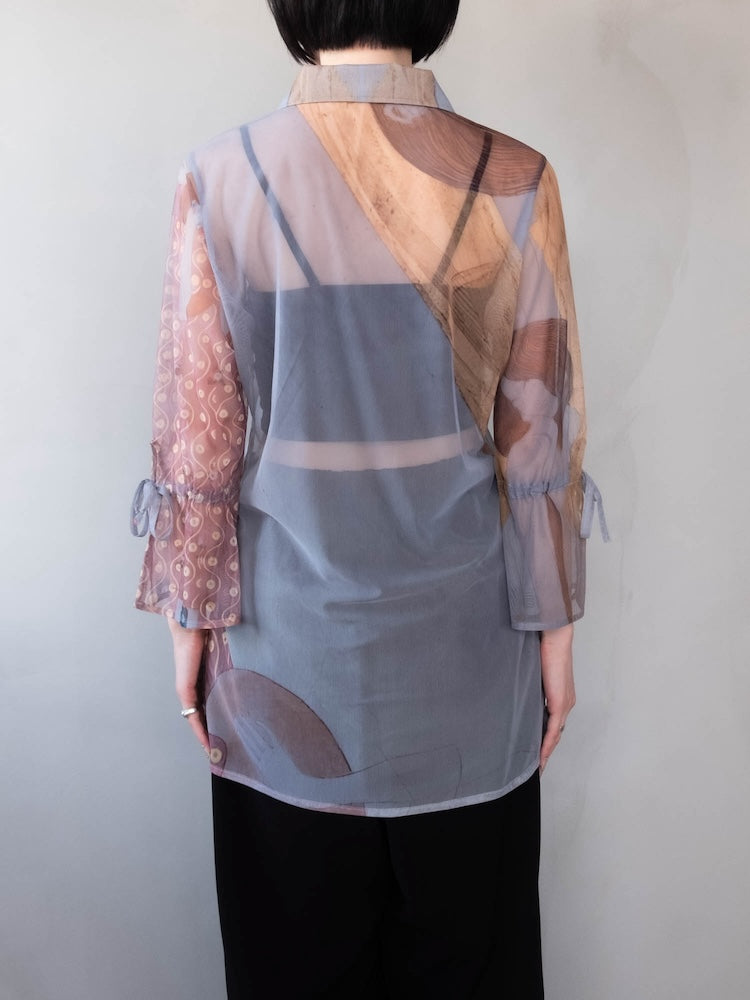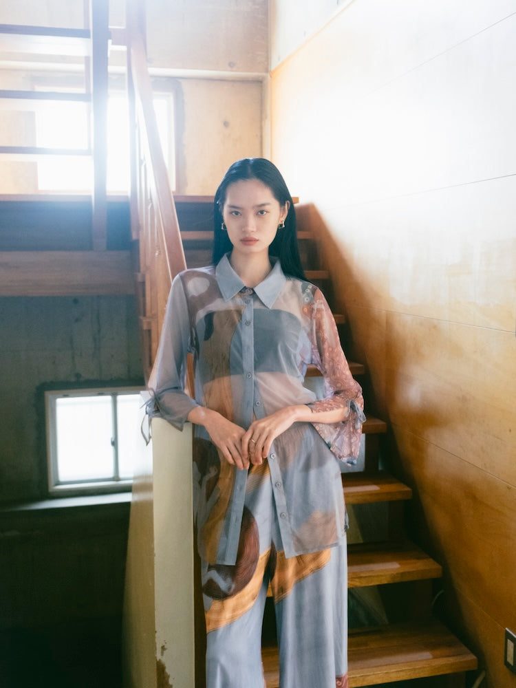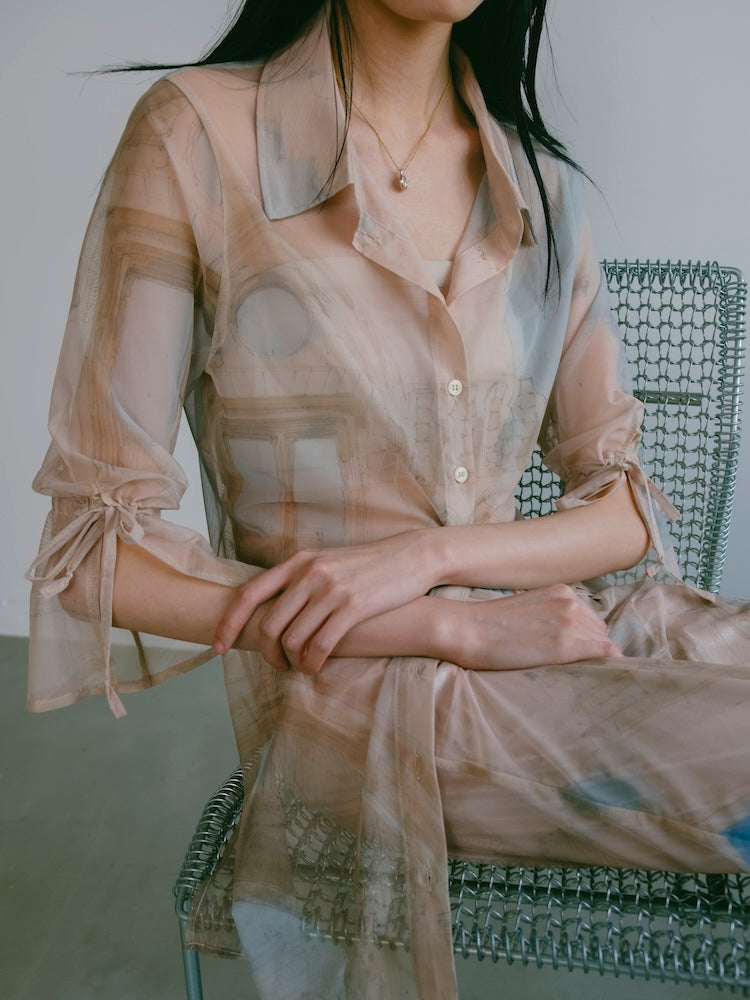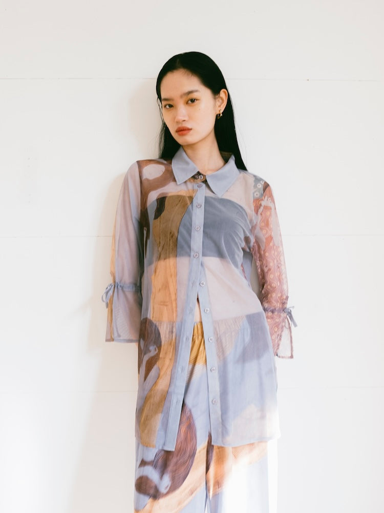 絵画作品を落とし込んだプリントが印象的な、シアーシャツ。