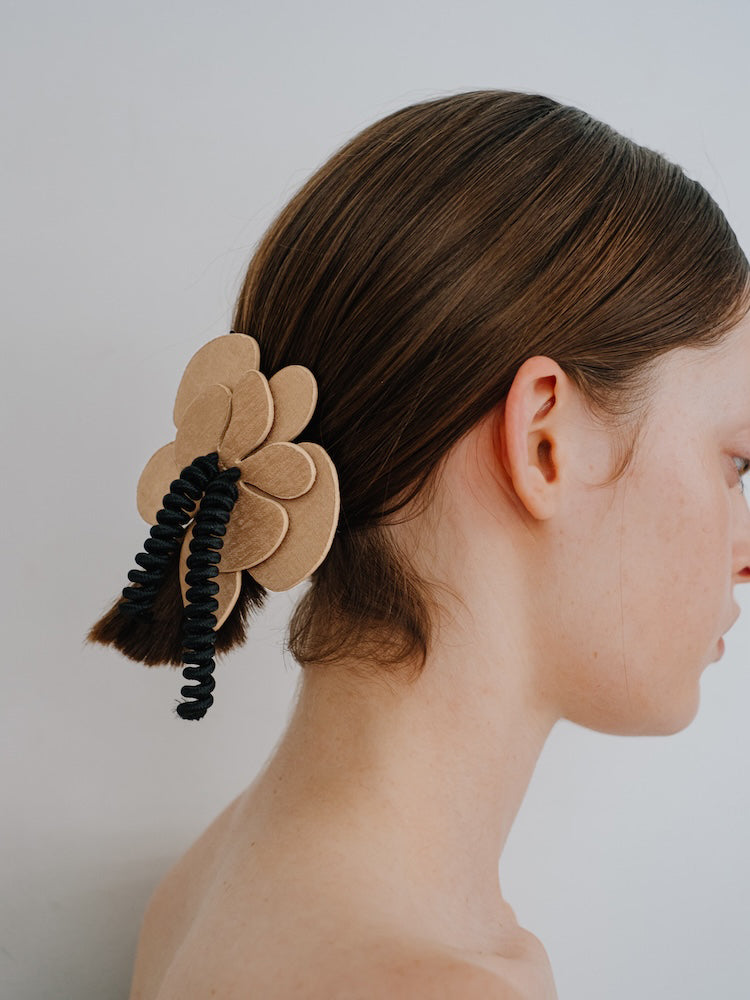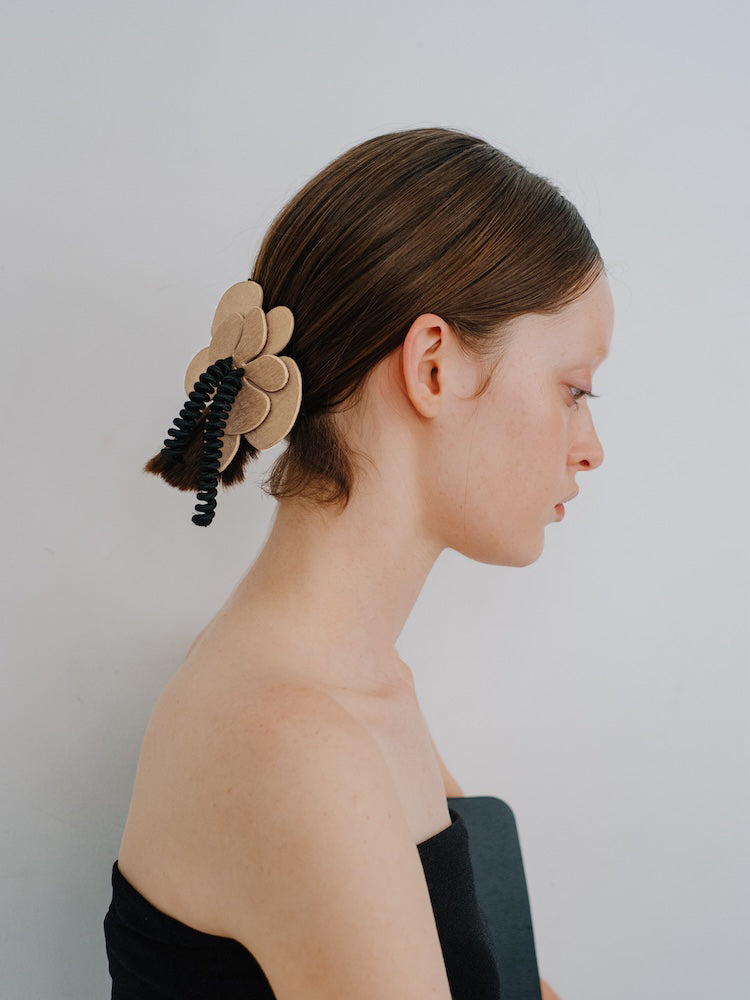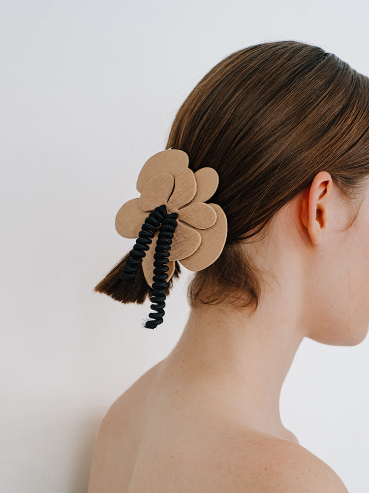 肉厚なフラワーモチーフで存在感のあるヘアバレッタ