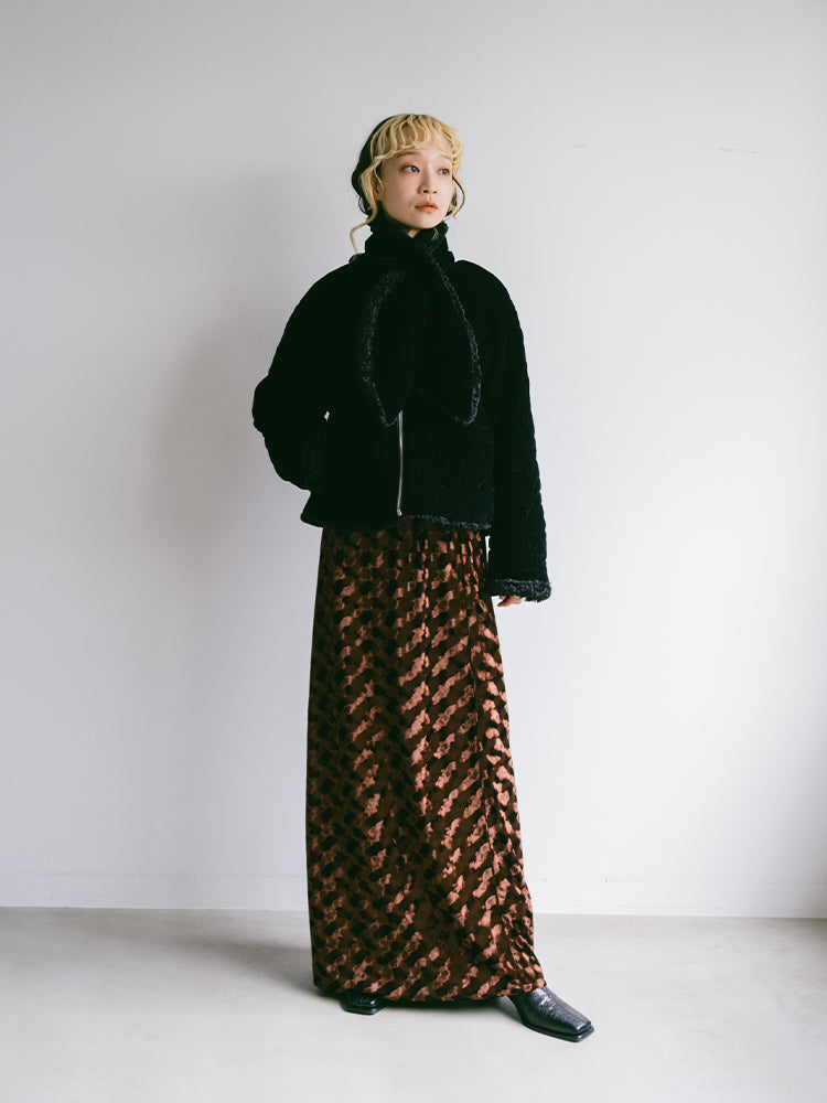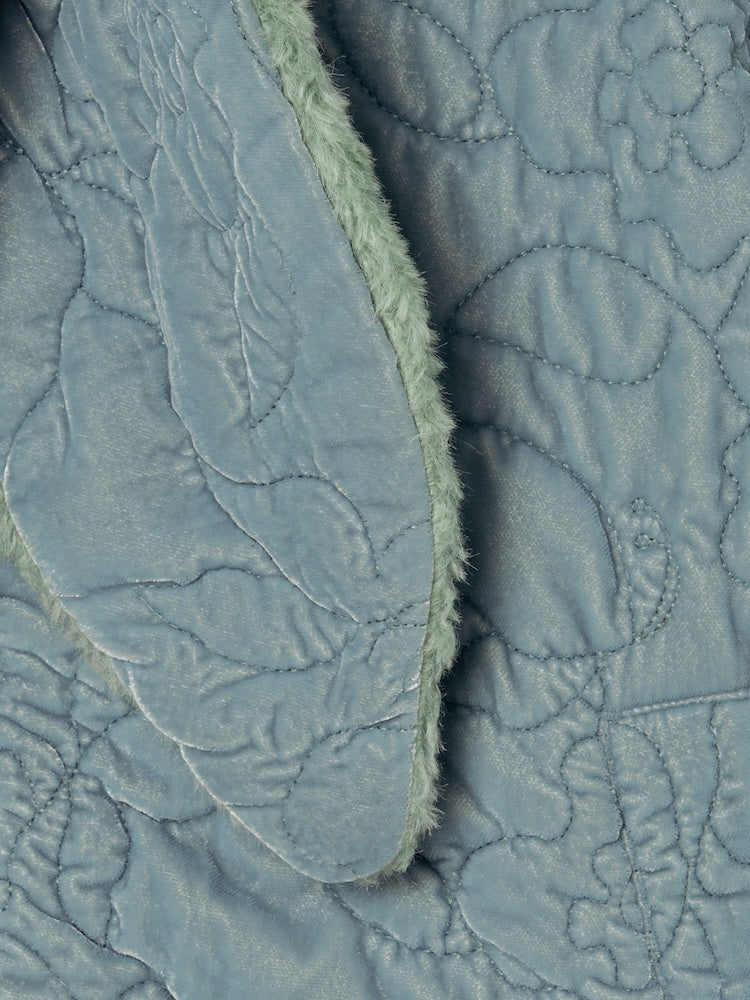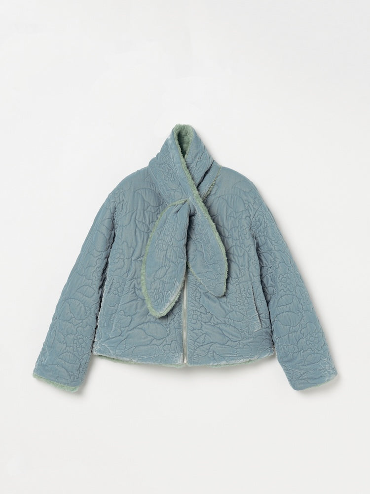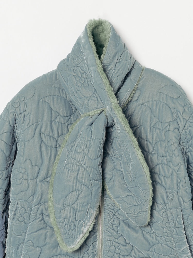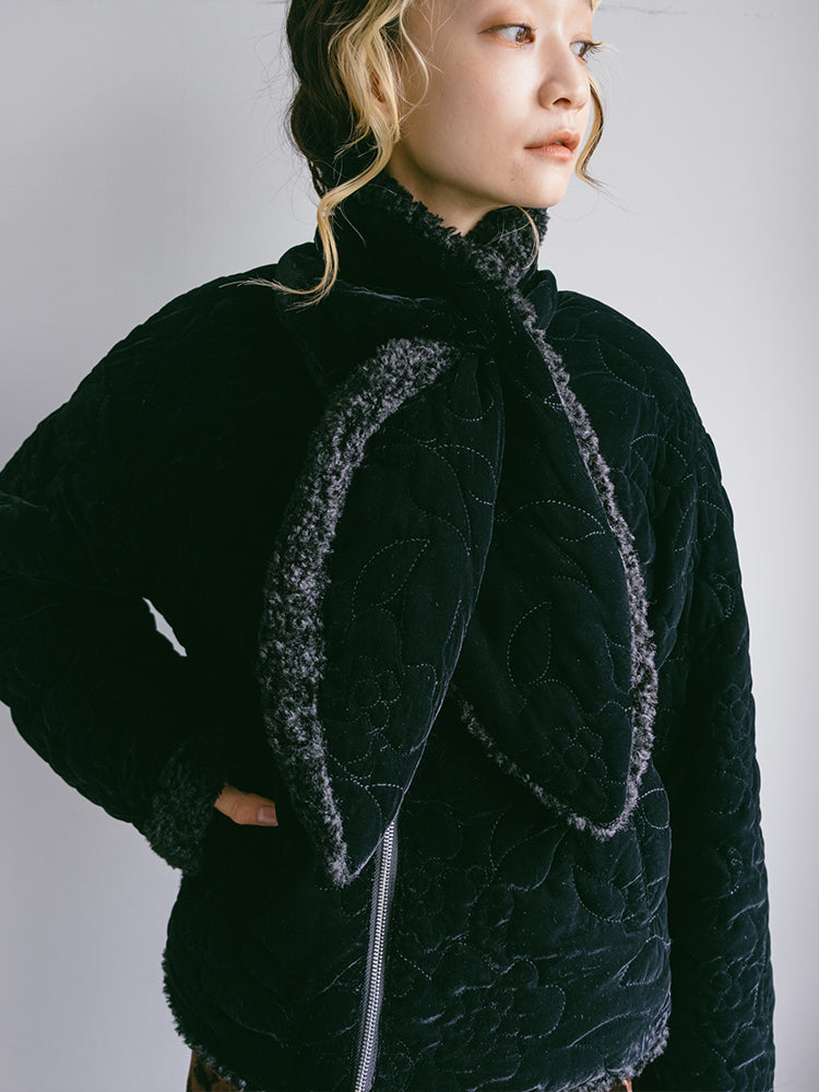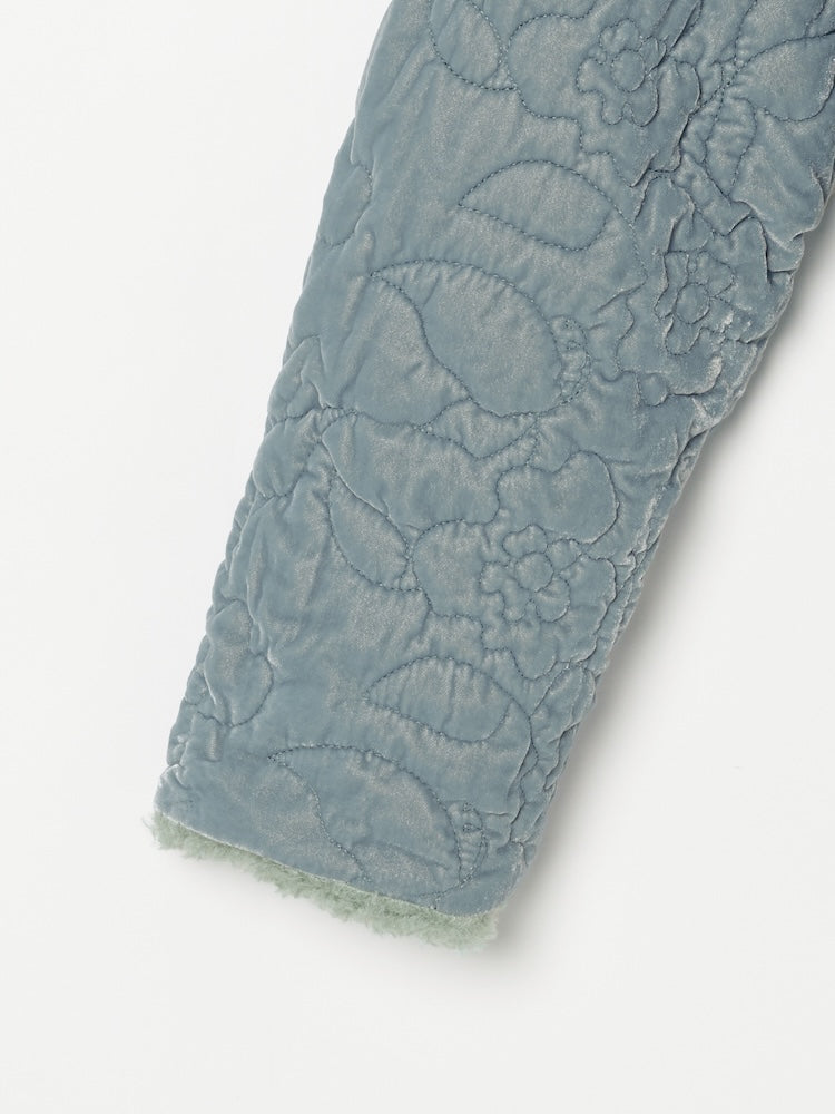 オリジナルの草花と蝶のモチーフを、繊細なキルティングステッチで描いたベロアコート。