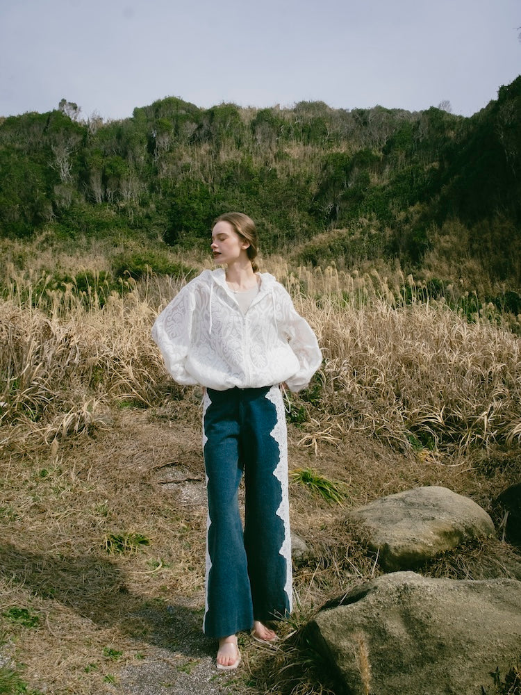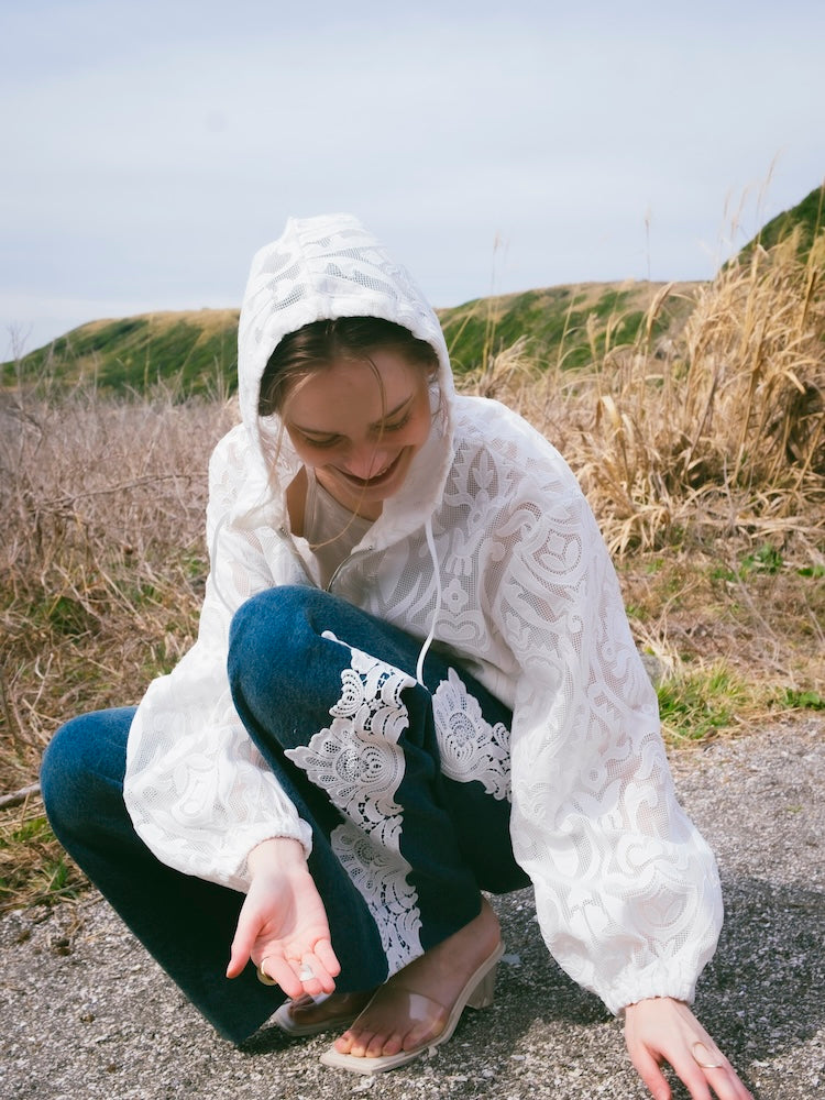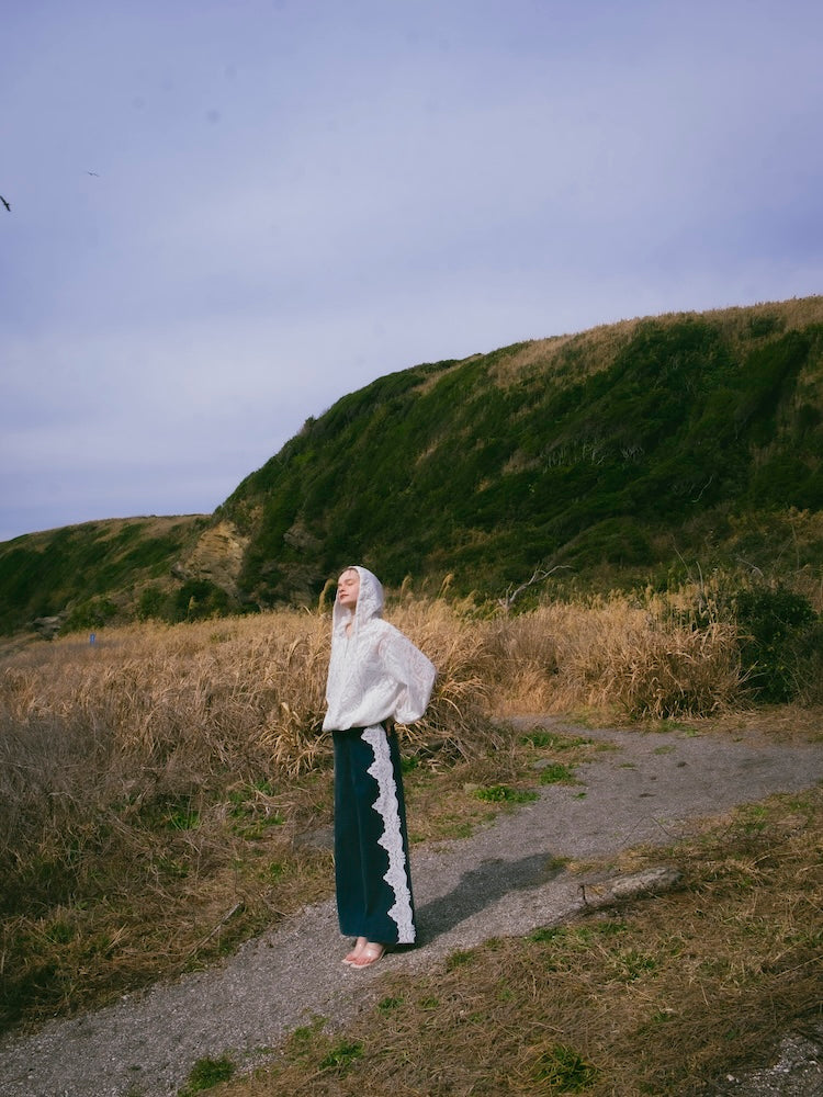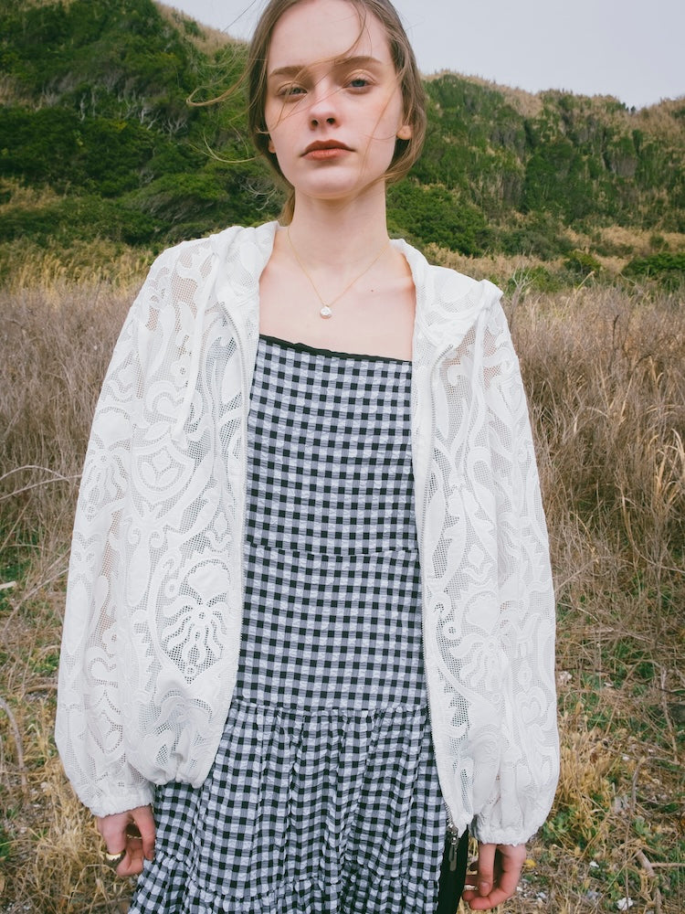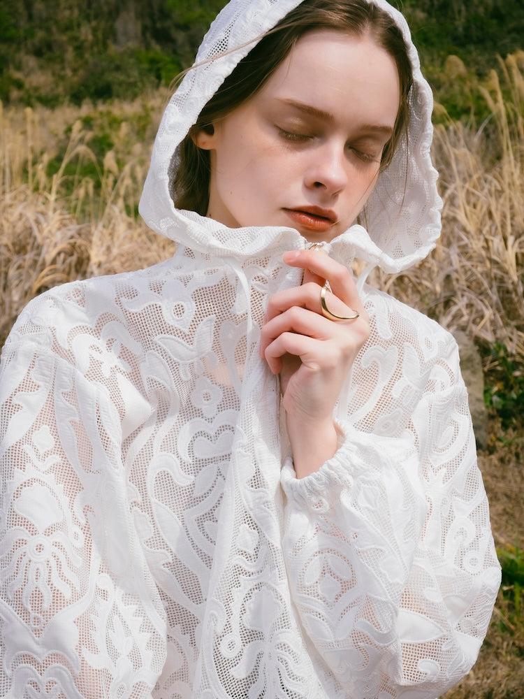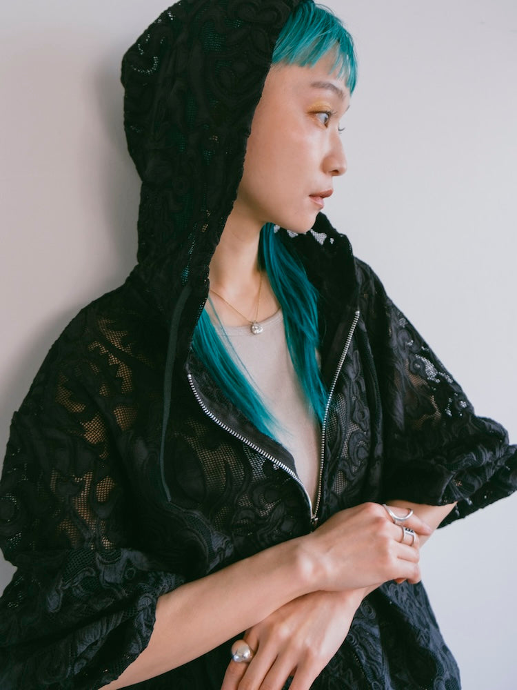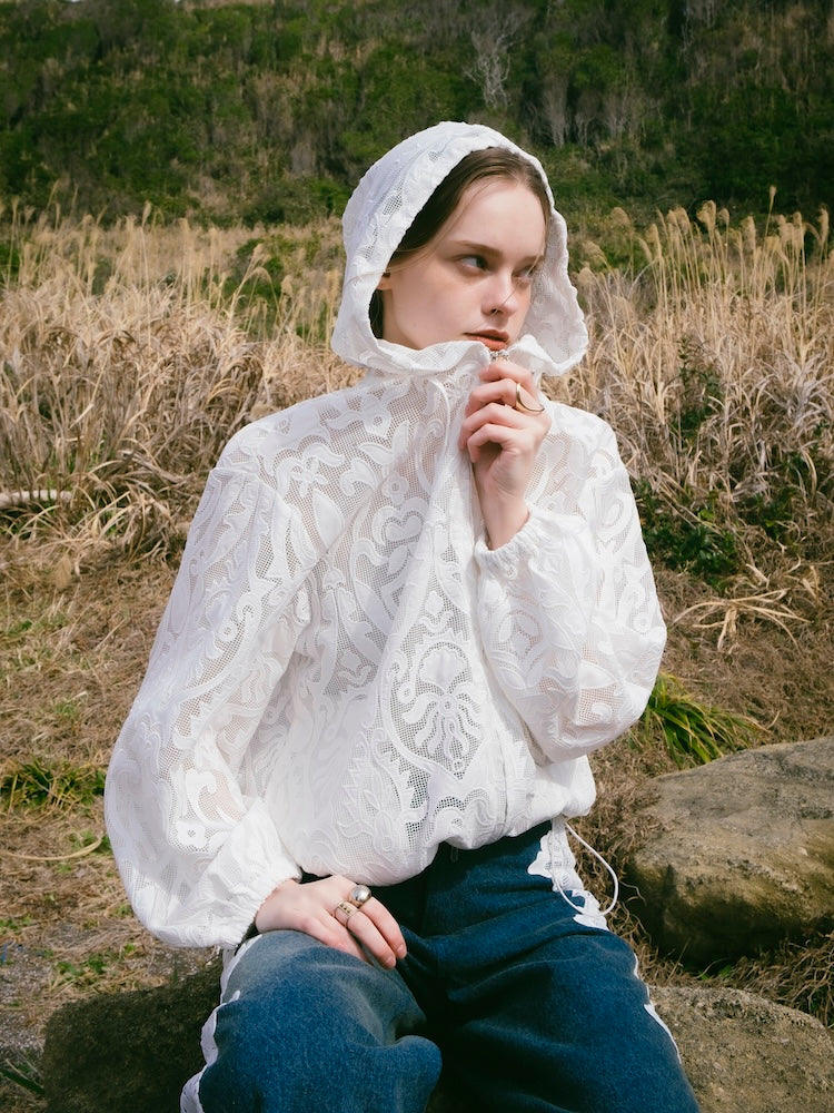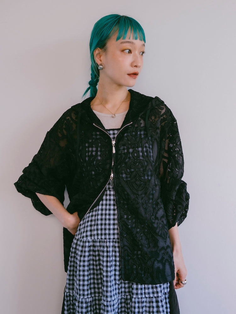 カジュアルなフードデザインに優美なレースを掛け合わせることで、ラフさと気品さが共存するバランスに仕上げました。