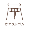 | Size | 総丈 | ウエスト(ゴム) | ヒップ | 裾幅 |