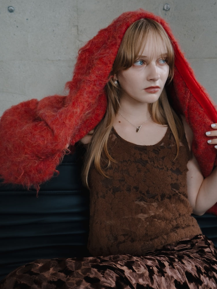 レース同士を重ねると絶妙に肌見せを抑えることができ、上品な女性らしさを演出。