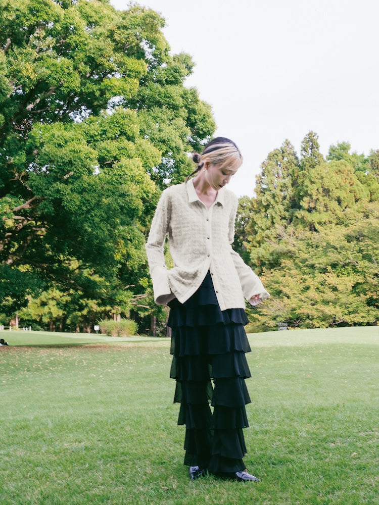 ゆるやかなシルエットが身体に自然に馴染み、ヴィンテージマニッシュな雰囲気と相まって洗練された抜け感を添えます。