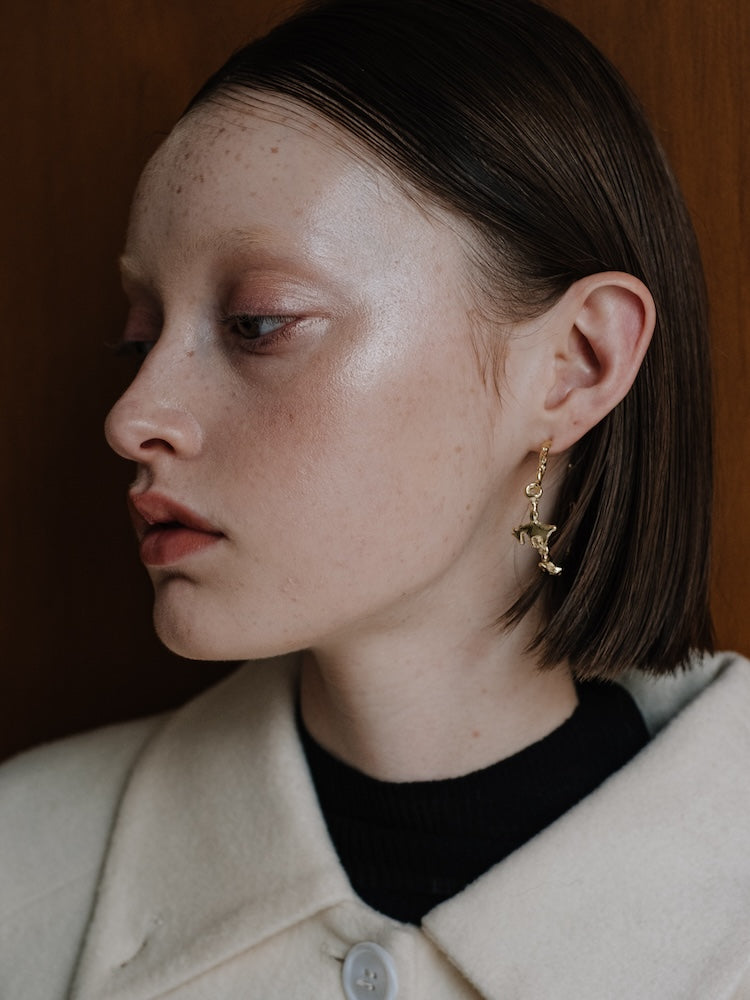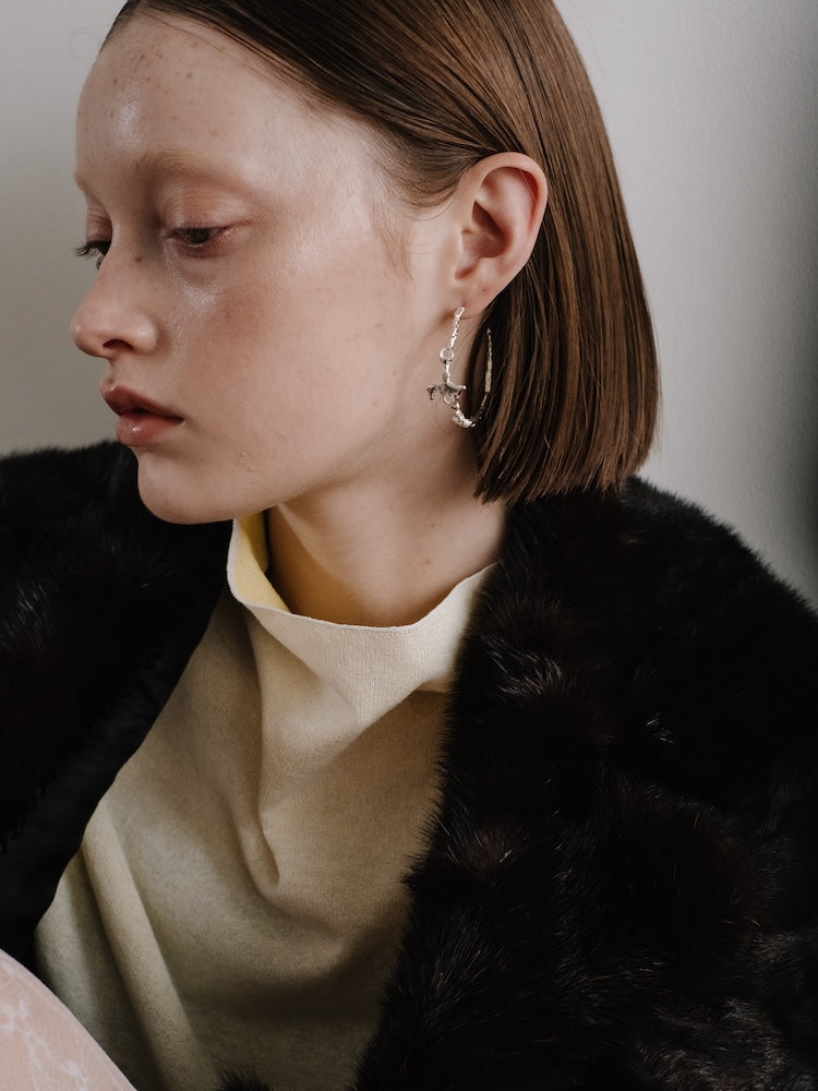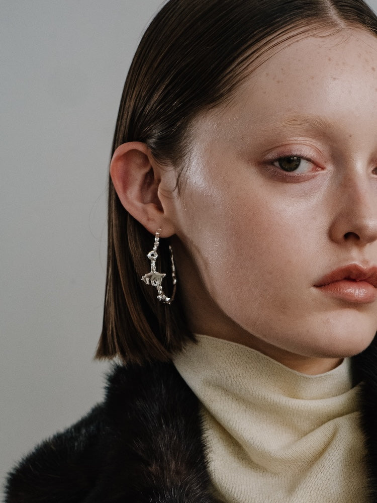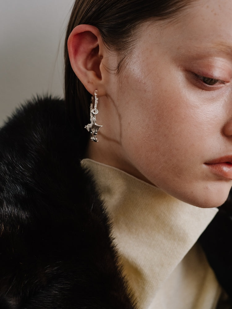 砂漠の夜空に浮かぶ神話の断片のように、それぞれの象徴が重なり合い耳元に静かな物語を宿す様なデザイン。