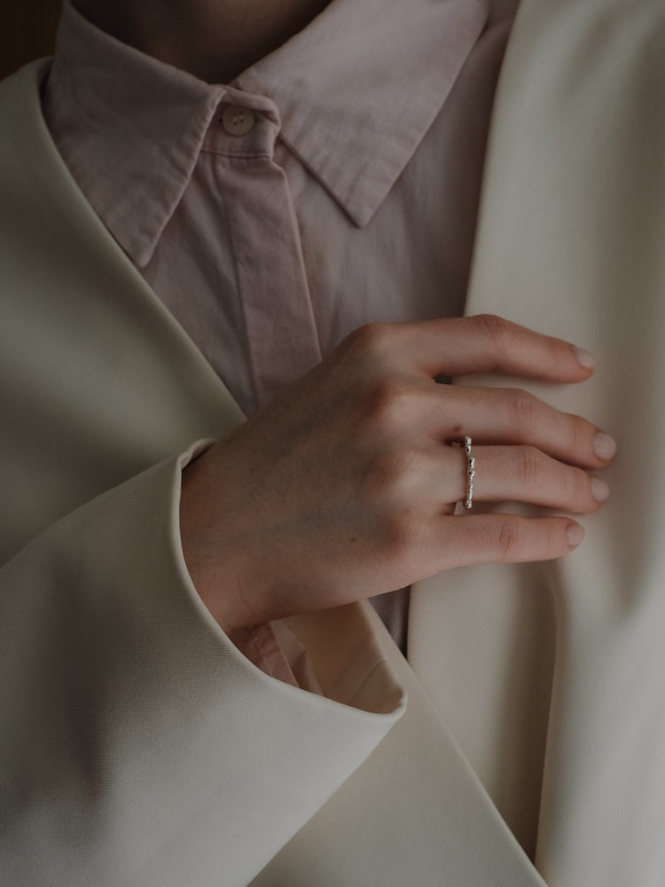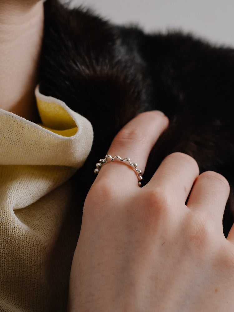 華奢なラインは、ほかのリングとのレイヤードにも自然に馴染み、スタイリングに奥行きを与えます。