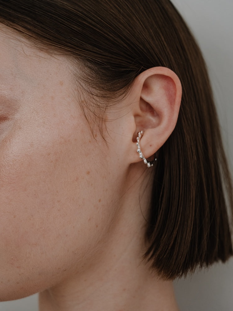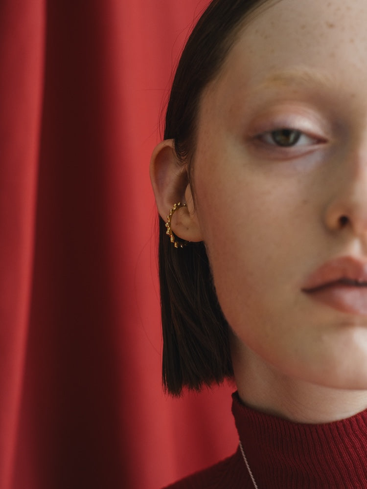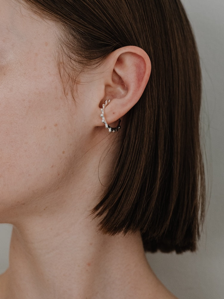 SYKIA独自のマットメッキ加工を施しています。ニッケルフリー。経年によってメッキコーティングが薄くなることがございます。水や汗による変色を防ぐため、使用後は布等で拭き取っていただくことをおすすめいたします。