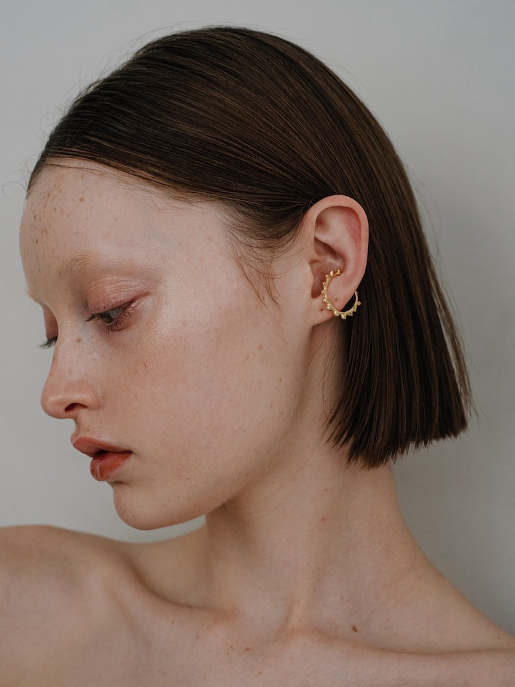 風化により刻まれたような不規則な突起。有機的でありながら構築的なその佇まいは、まるで古代の装飾の断片を想起させます。