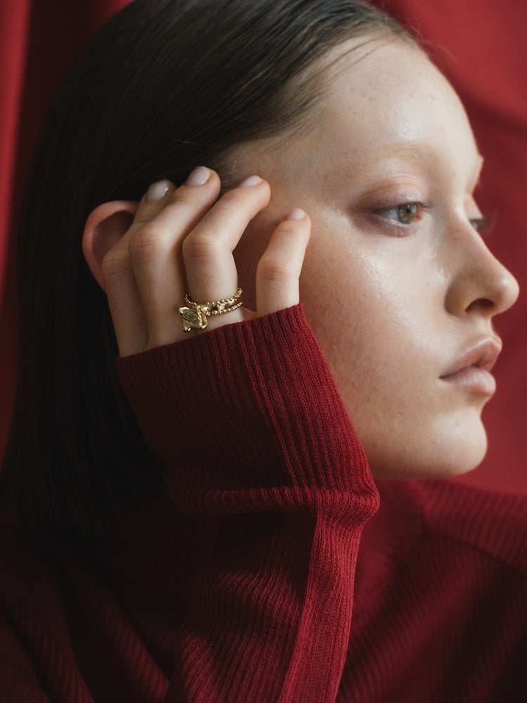 古代と現代の淡いを感じさせるようなリングは、日常にアンシエントな余韻を添えるアイテムです。