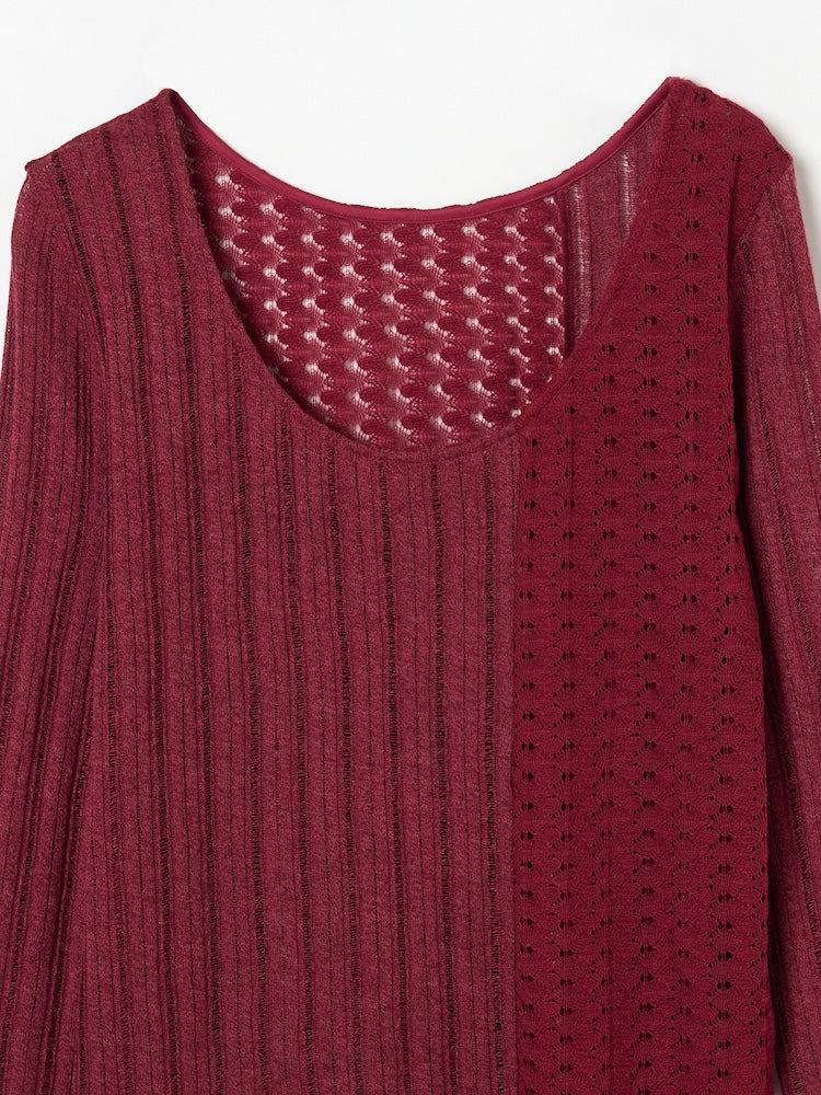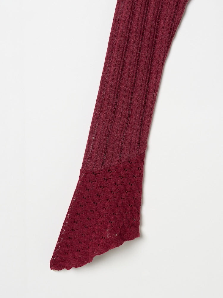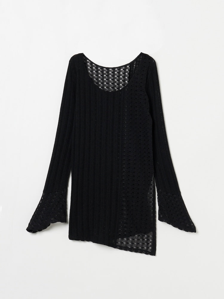 伸縮性のある2種類のレースを切り替えたロングトップ。