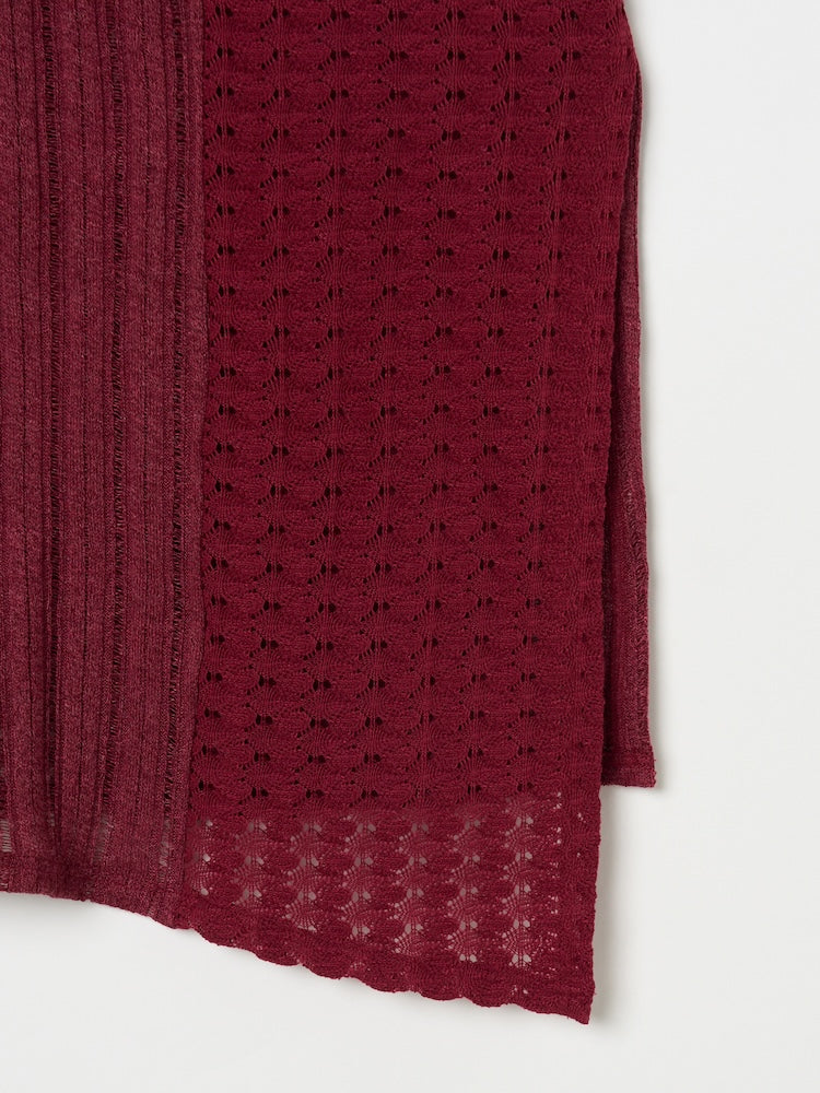 縦ラインの模様が身体のラインに沿って縦に長く見せてくれ、袖にたっぷり入ったフレアとあわせてスタイルアップできました。