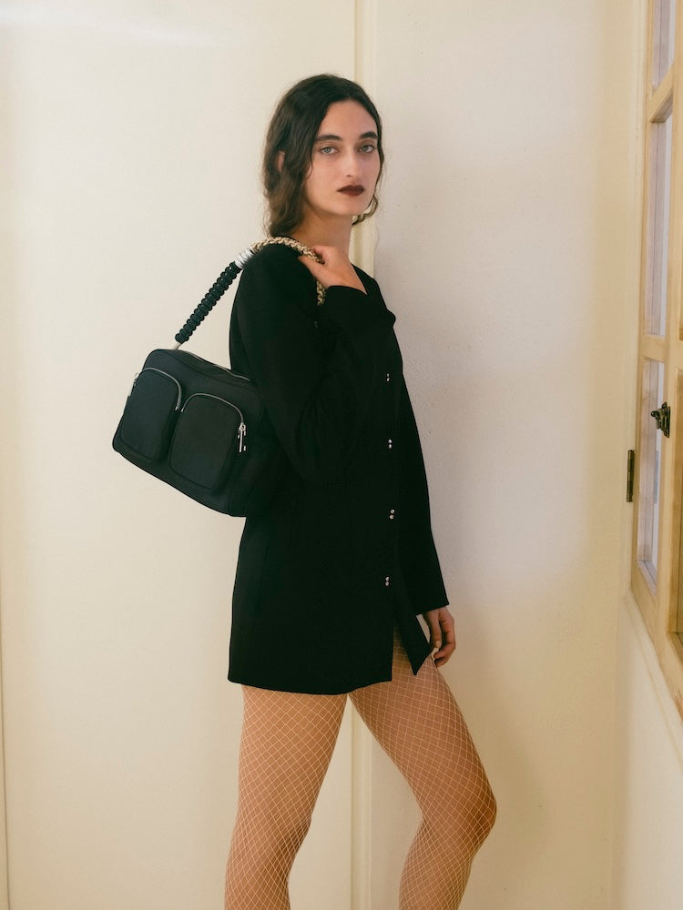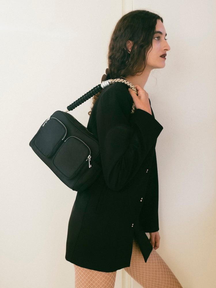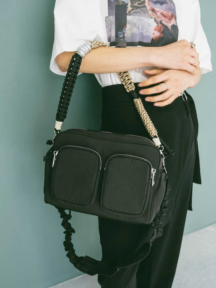 奥行きのあるパラコードと滑らかなナイロンの質感が相まって、スタイリングにモードなアクセントを与えます。