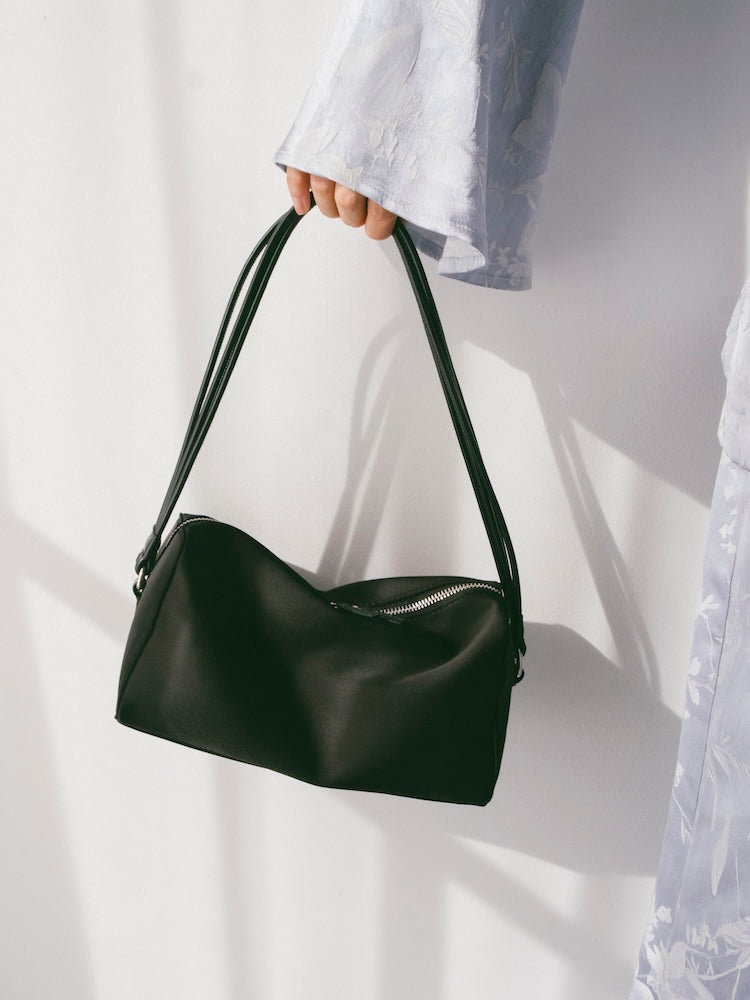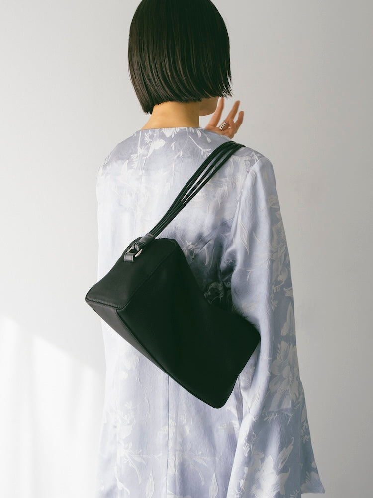 いつもの着こなしに上質な光沢感を添えるサテン素材のハンドバッグ。
