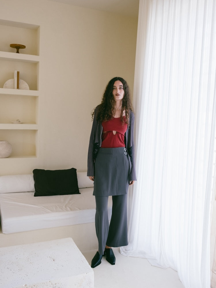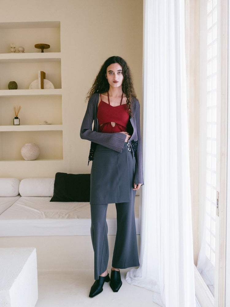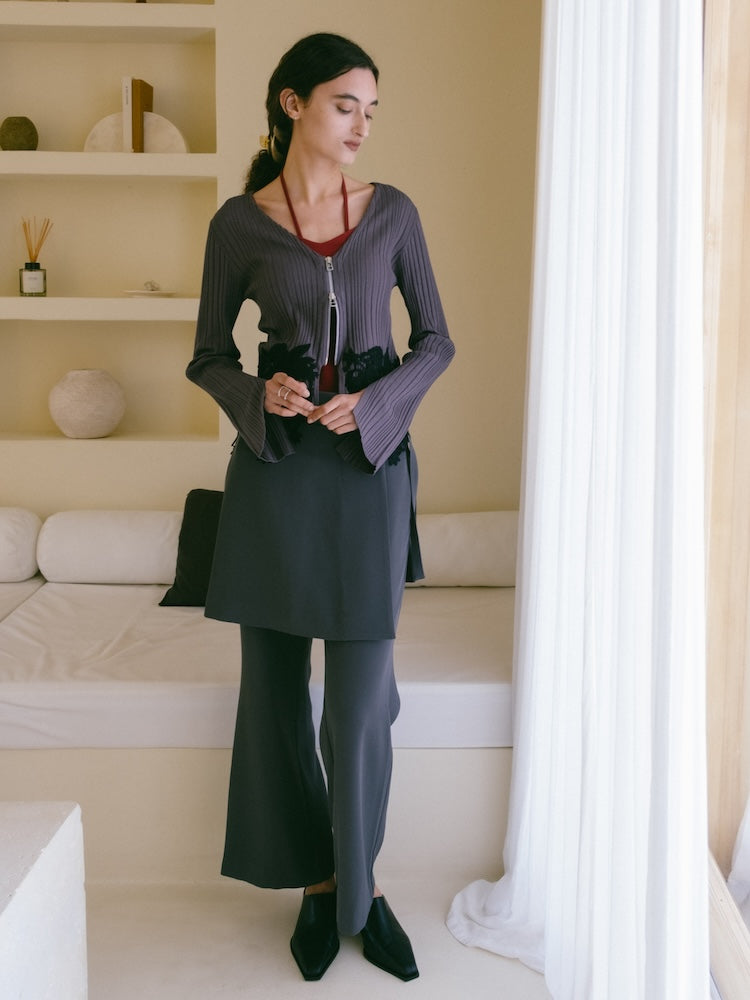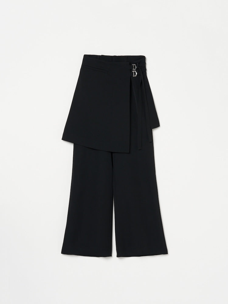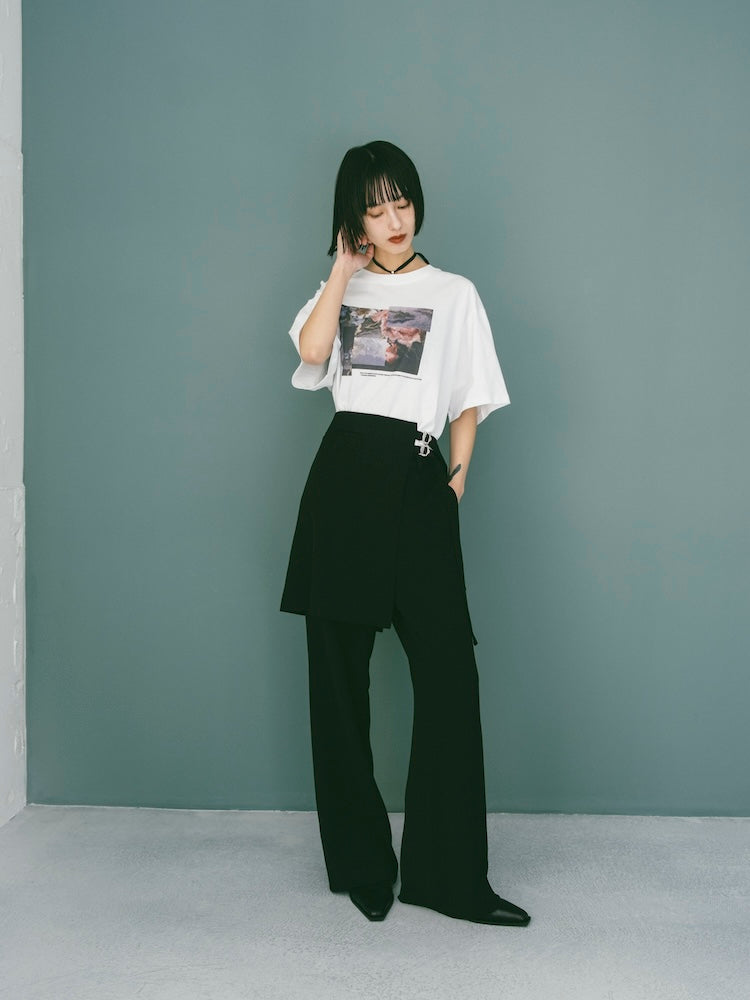 ボディラインを拾わないワイドなシルエットは、エフォートレスなムードを演出しながらも、脚長効果を実現。