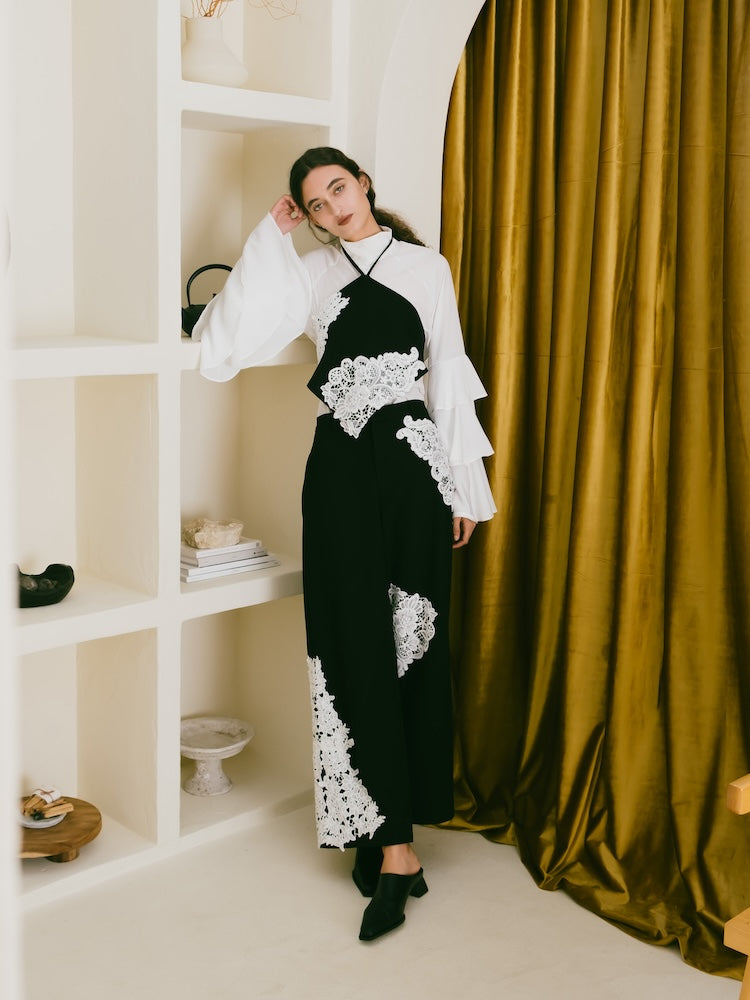 しなやかな生地が身体に沿い、華奢な紐が女性らしい抜け感を演出します。
