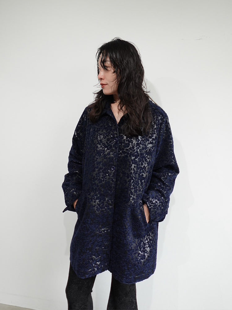 膨れジャガードの立体感のある生地がお気に入り。身幅が大きく、中にニットを着ても着膨れしないので寒い季節も大活躍間違いなしの一着です。