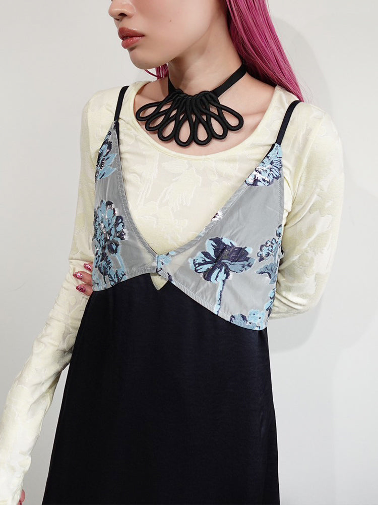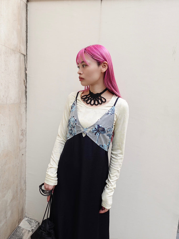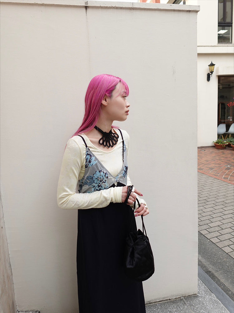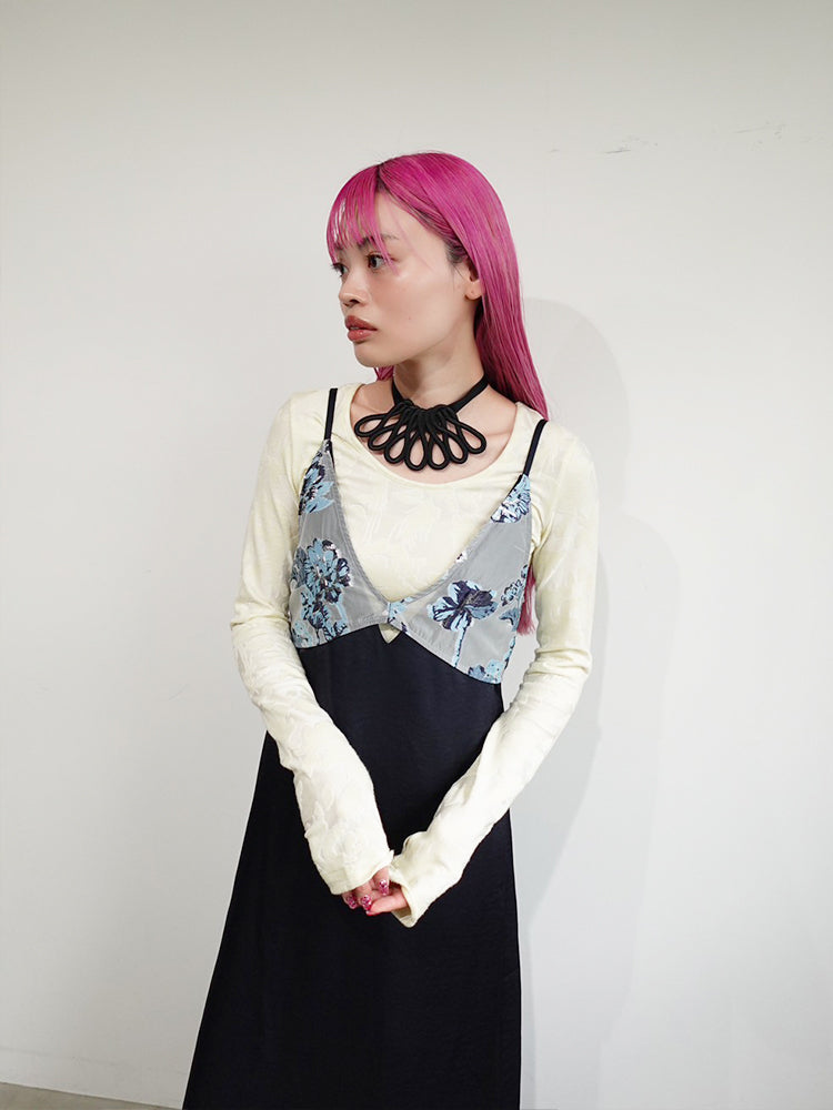 - Leaf Emboss Long Sleeve Top なし / Jacquard Layered Camisole Dress なし