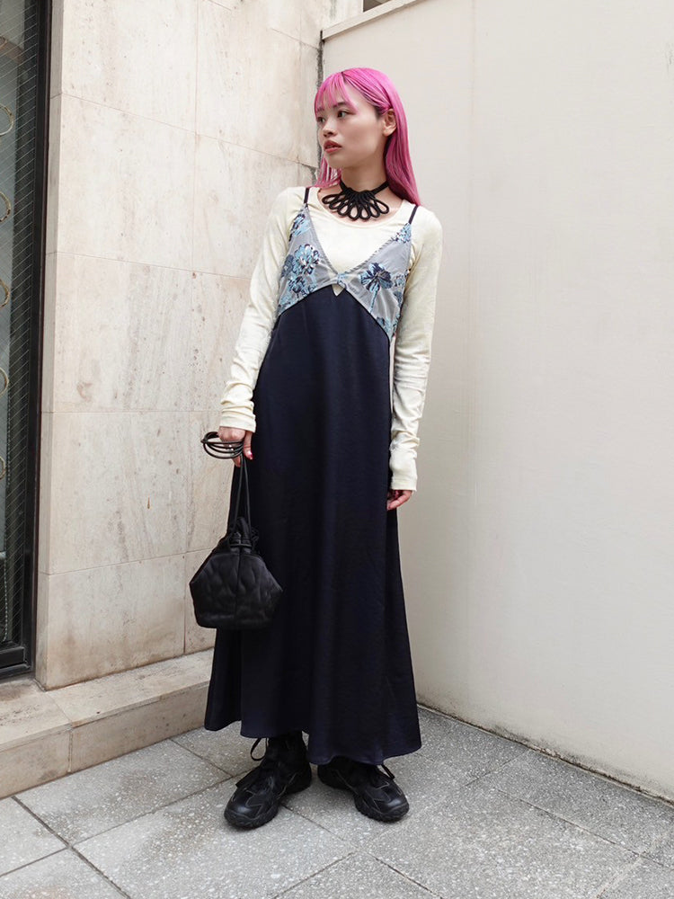 - Leaf Emboss Long Sleeve Top あり / Jacquard Layered Camisole Dress なし
