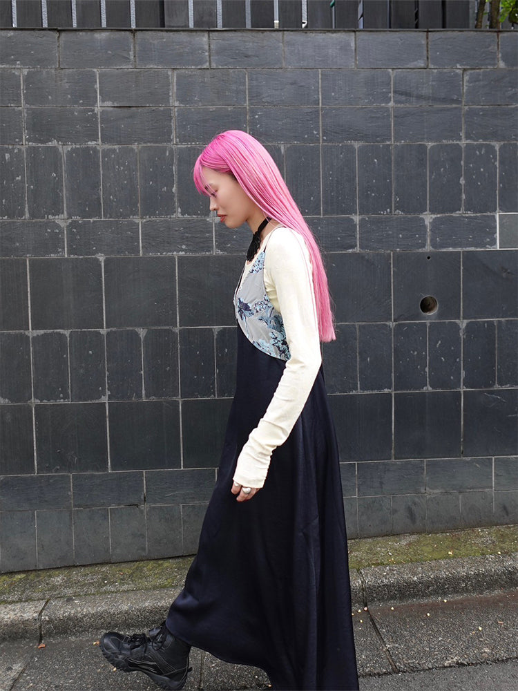 | Size | 総丈 | 肩紐 | 肩幅 | 身幅 | ウエスト | 裾幅 |