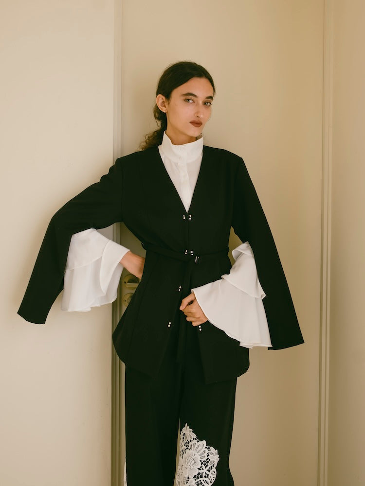 肌触りがとてもいい素材で、着心地が快適です。たっぷりとしたフレアスリーブが印象的で、女性らしさが演出できます。丈感はお尻がギリ隠れるくらいの長さで、袖は手が隠れるくらいの長めでした。