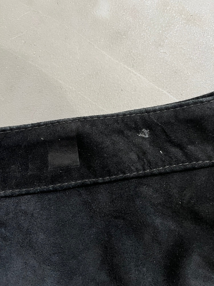 【B】ジップ部分に錆有り。ウエスト部分ハンガー跡あり。スエード部分に経年による生地キズあり。