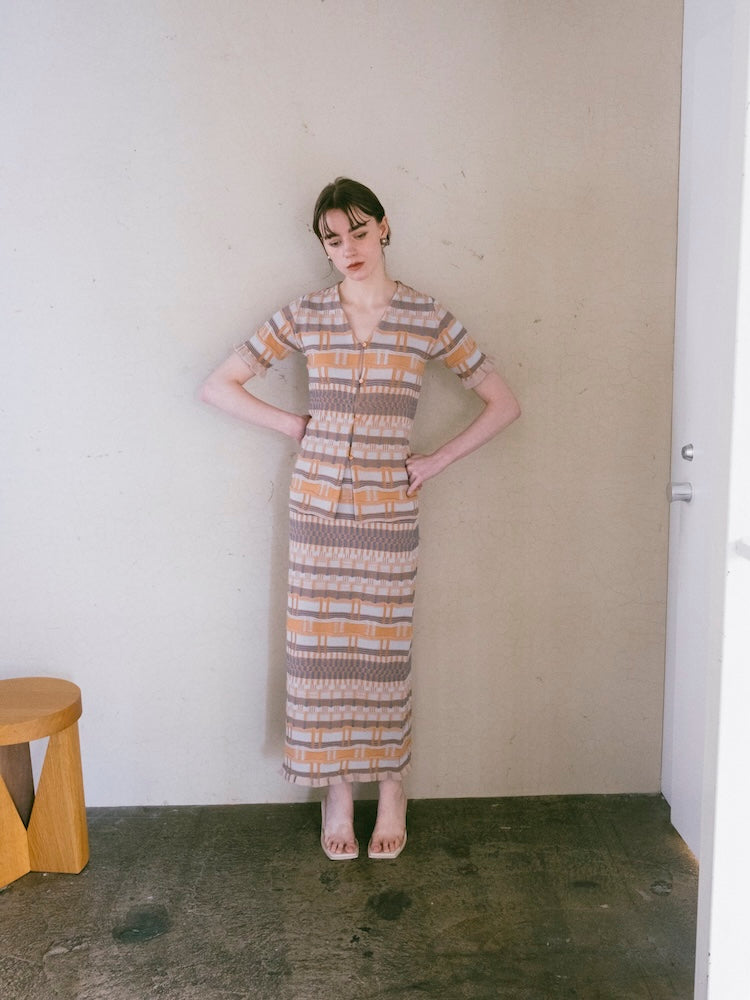 お尻の下辺りからストンと落ちるシルエットになることと、様々な形のスクエア模様が入っていることで、お尻や腰回りの張りも、いい感じにスタイルアップしてくれました。