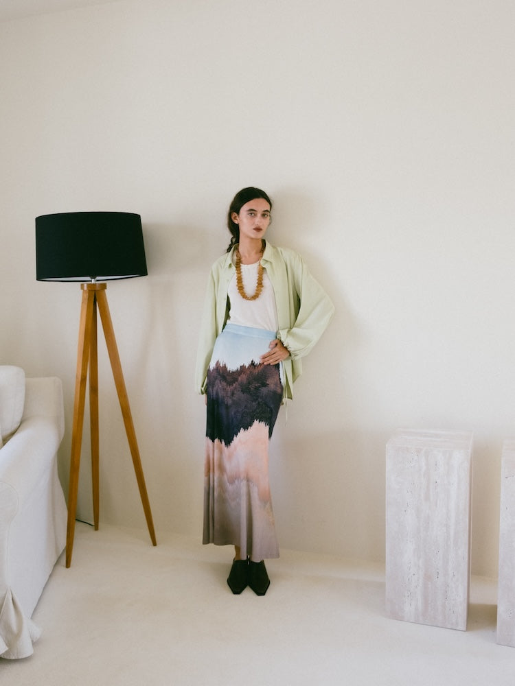 とろみのある柔らかな着心地が魅力のオーバーシャツ