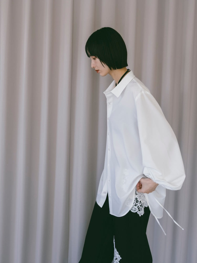 袖口のドローストリングがポイントのデザインシャツ。