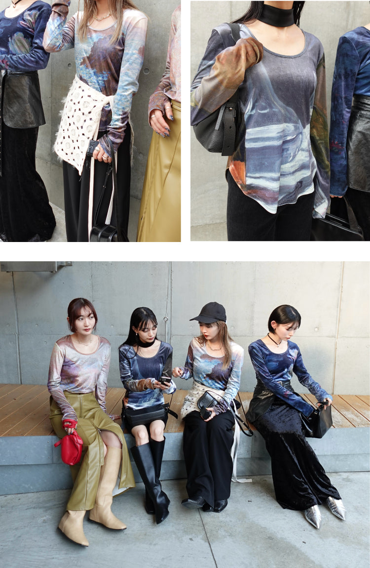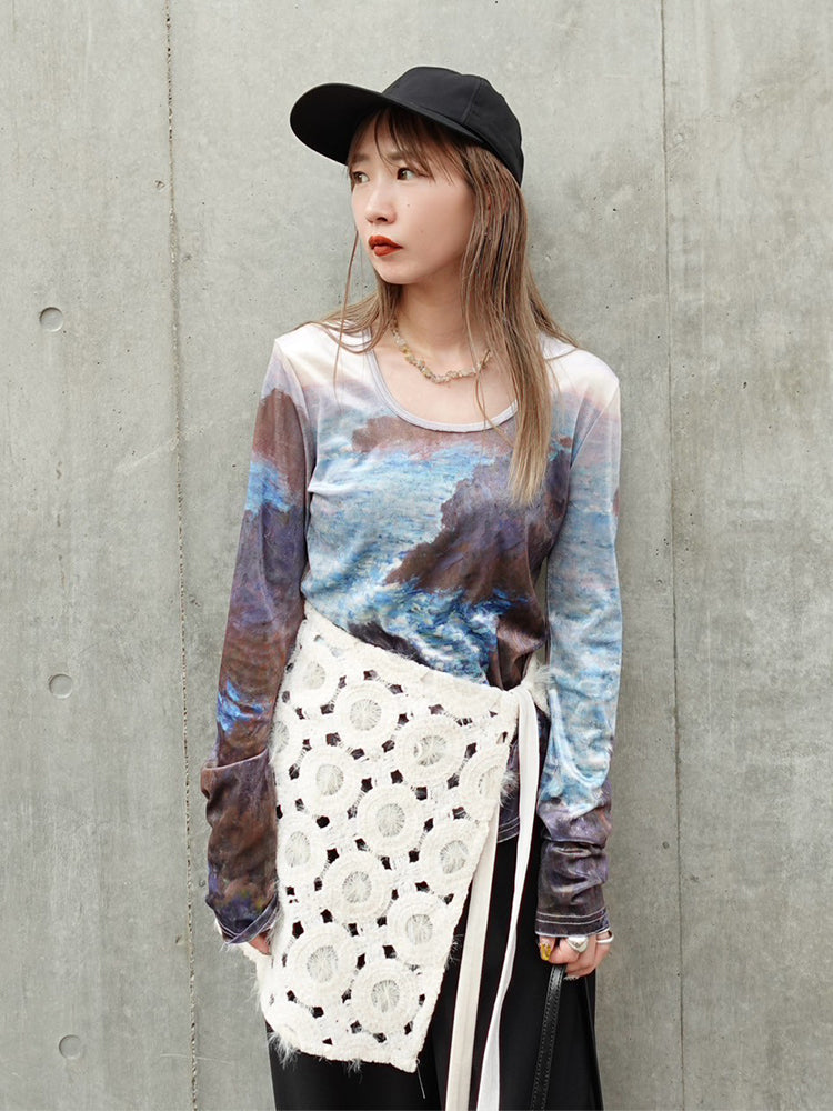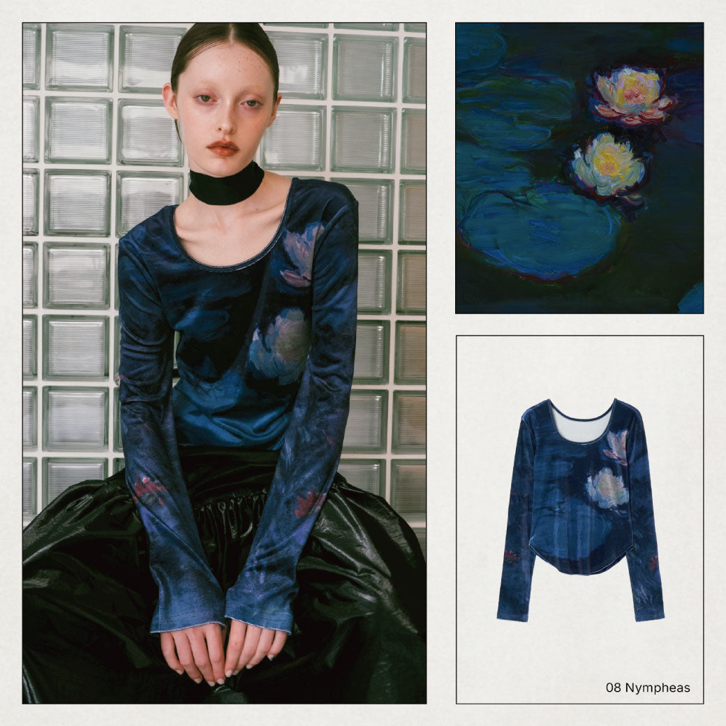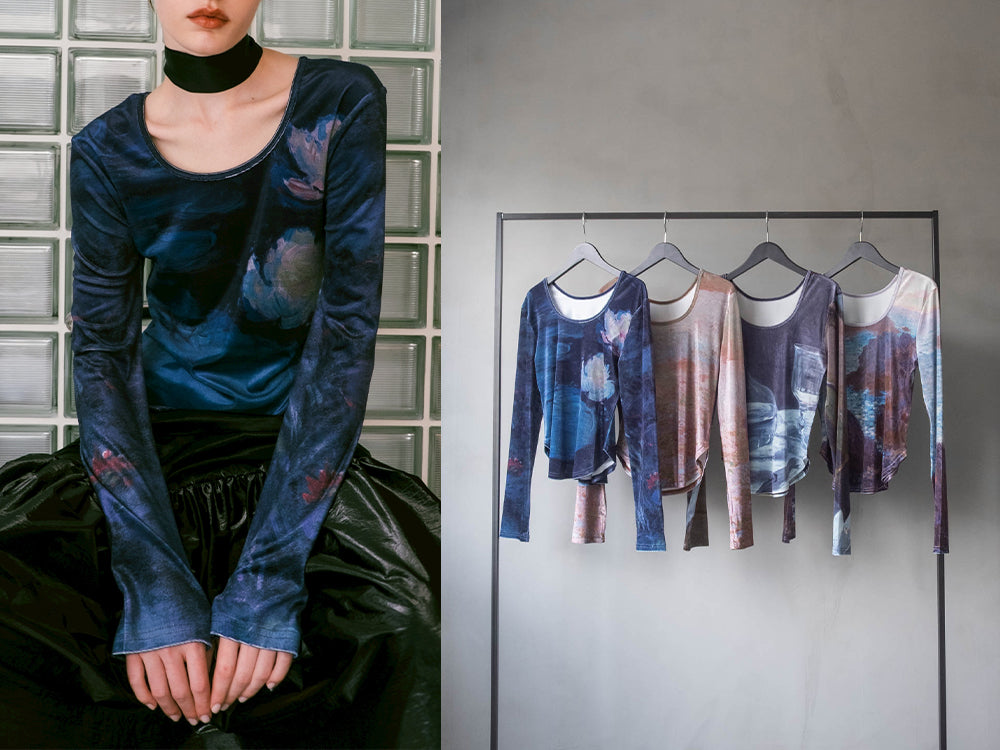 オリジナルブランド・sahara より、印象派の巨匠 クロード・モネの作品を落とし込んだ4種類のベロアトップスが販売開始。