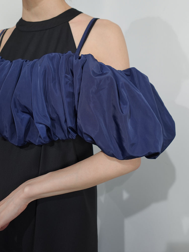 ビスチェは肩出しスタイルはもちろん、ぐっと引き上げれば肩を隠すことも可能。シーンに合わせてお使いいただける一着です。