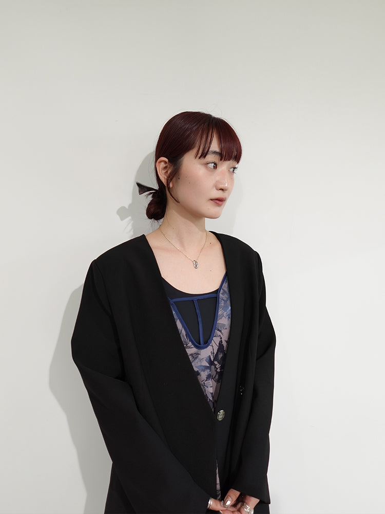 バックリボンがついているため、ウェーブ体型の方はフロントで結んで目線を上に。ストレート&ナチュラル体型の方はそのまま後ろで結んでゆったりと。