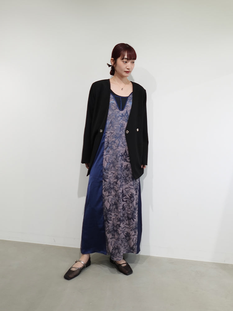 身幅にゆとりがありリラクしーな着心地が人気のドレス。肉厚のジャケットに合わせよそ行きスタイルに。