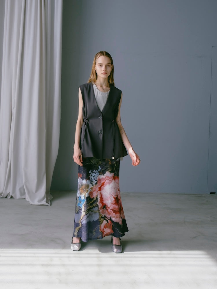 ウエスト部分に施されたドローストリングの絞り具合を調整することで、メリハリのあるペプラムシルエットから、リラックス感のあるストレートシルエットまで、一着で異なる表情を楽しめます。