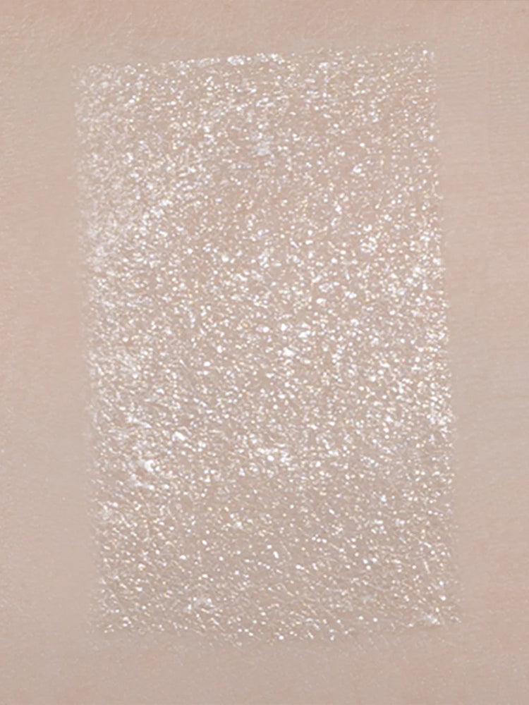 ミルキーパールの繊細な輝きが美しいホワイトグリッター。アイシャドウのベースやハイライトとしてなど、マルチユースが叶う優秀なカラーリングです。