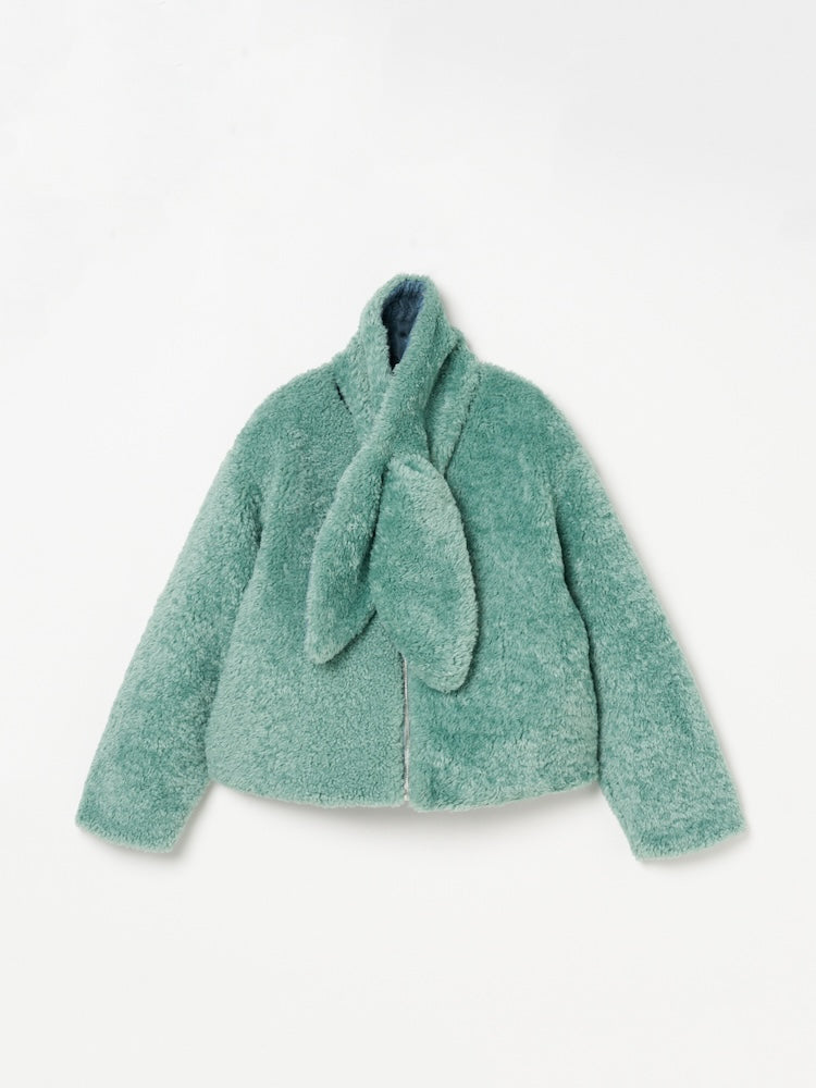 マフラーが一体となったデザインで、首元をやさしく包み込みながら保温性も◎。