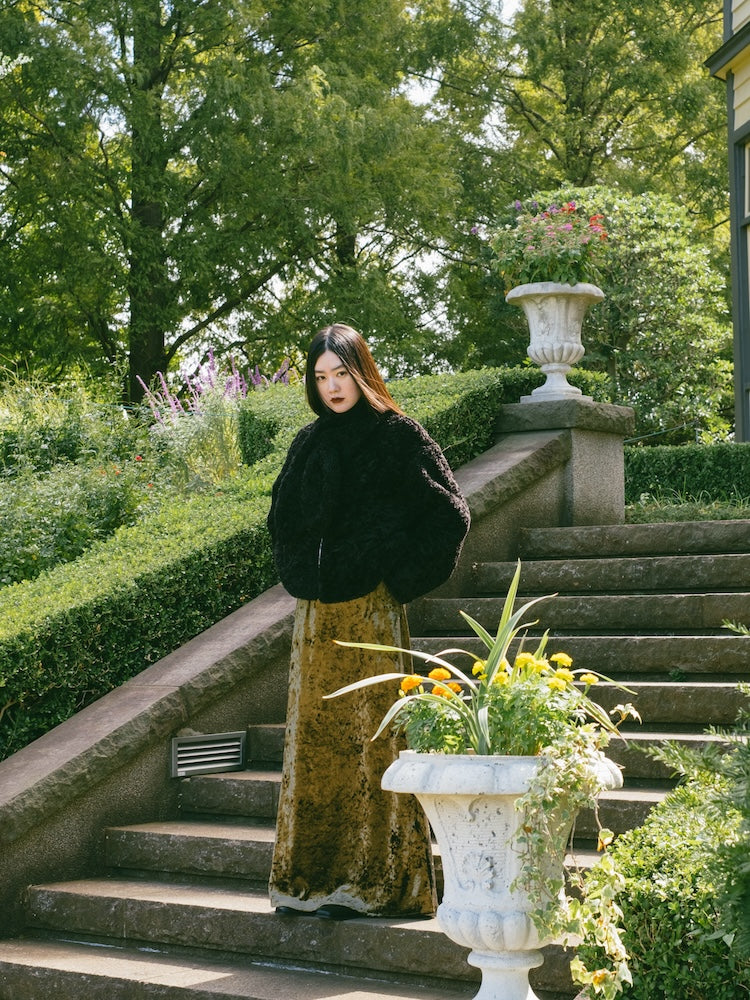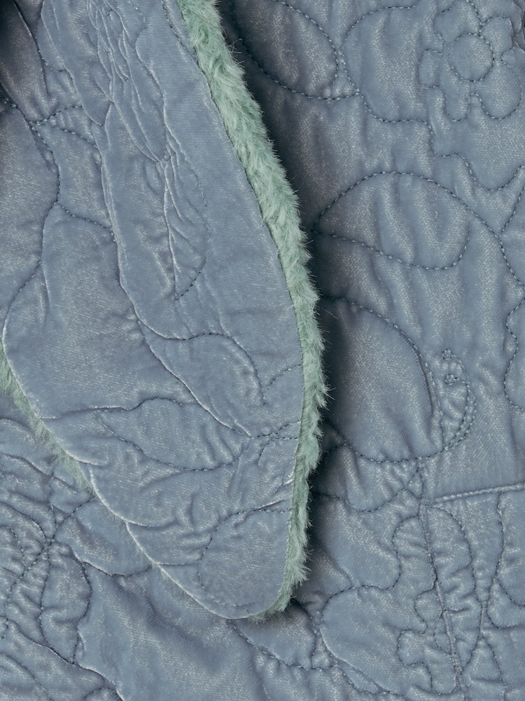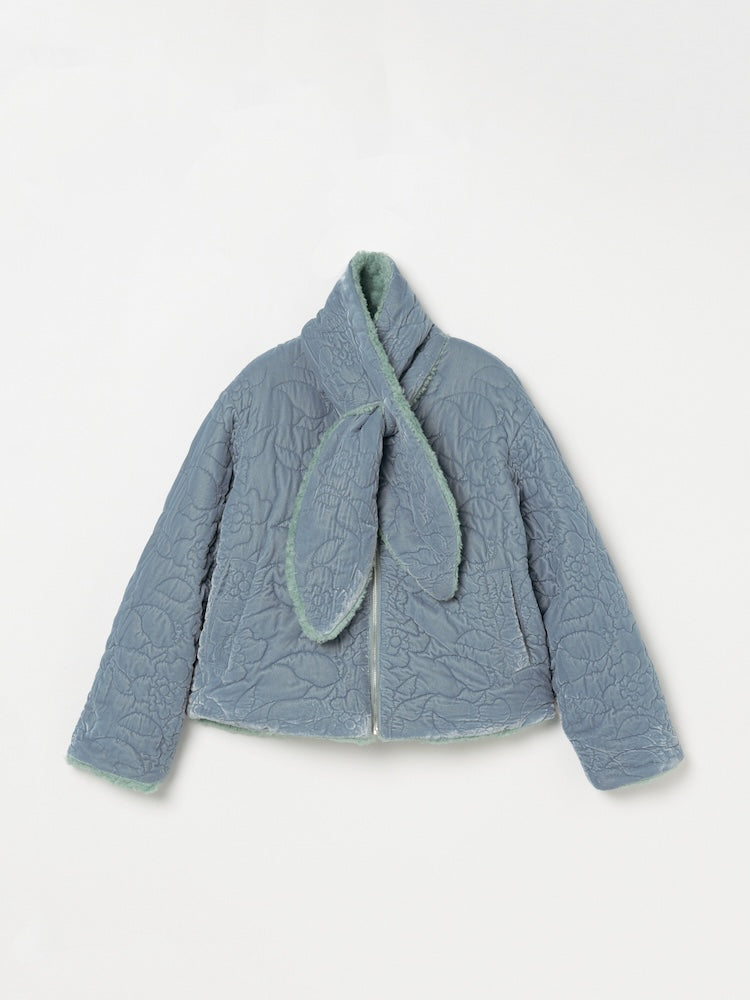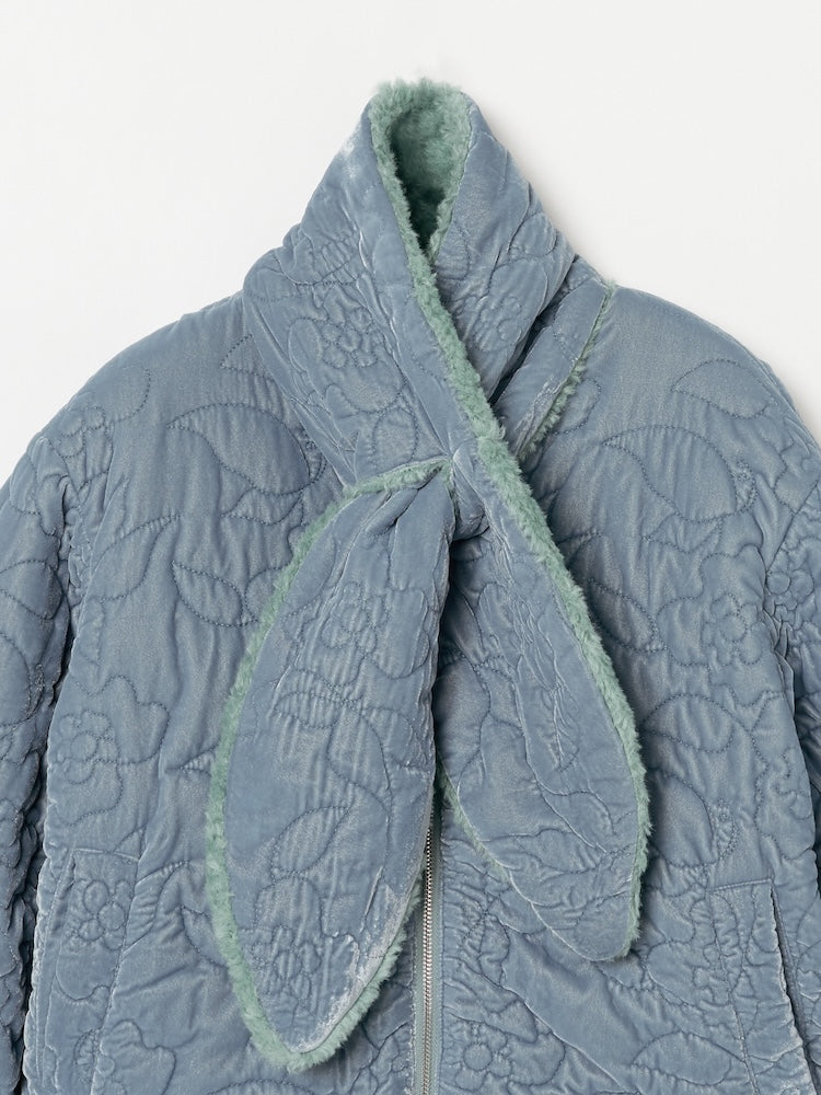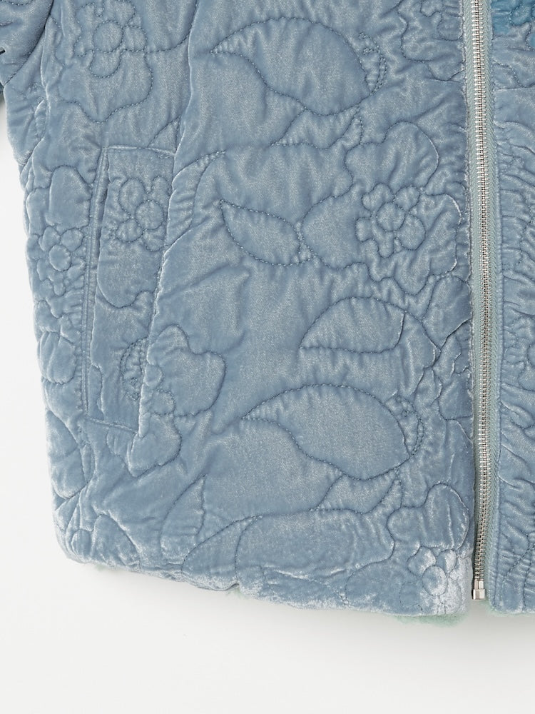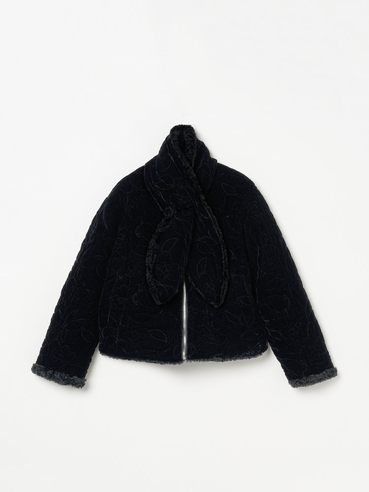 オリジナルの草花と蝶のモチーフを、繊細なキルティングステッチで描いたベロアコート。
