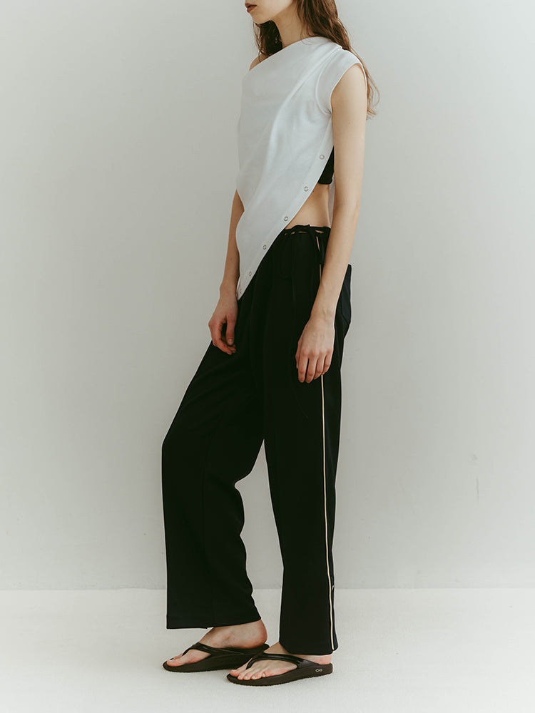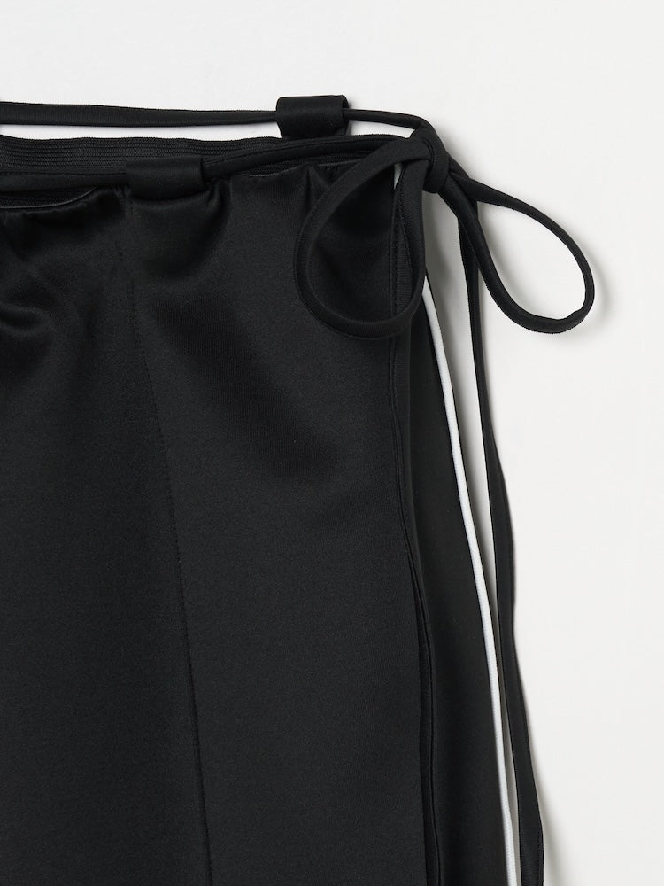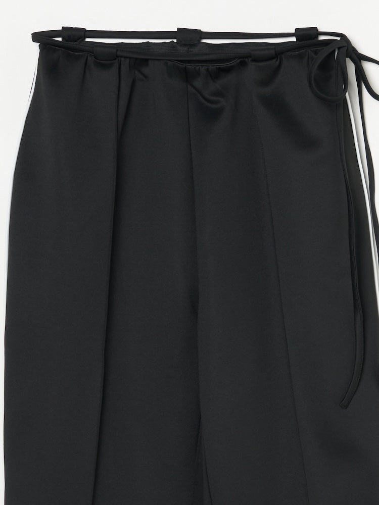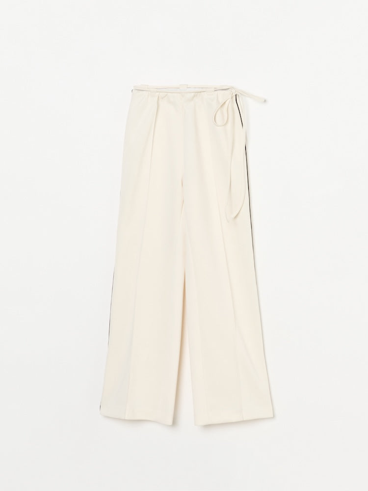 柔らかくストレスフリーな着心地のジャージ素材を使用。ウエストのモードなデザインにより、リラックスしつつもカジュアルになりすぎない一着です。ベルトとしても機能するのでサイズ調整も可能。ジャケットやシャツなど、シャープなアイテムとの組み合わせがおすすめです。