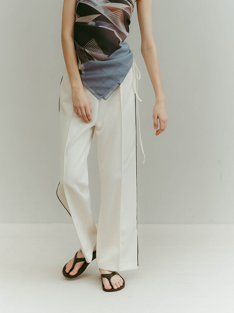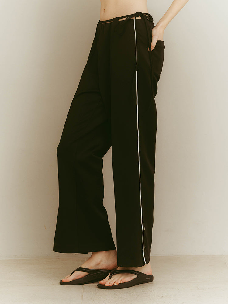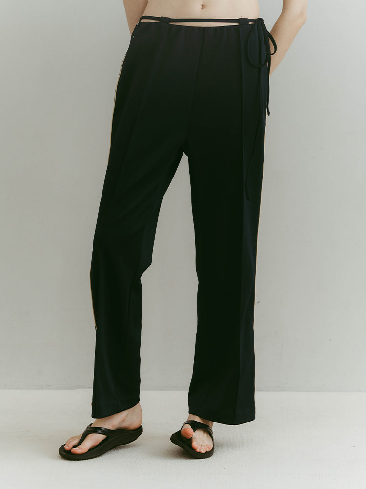 ウエストにあしらったミニマルなドローストリングが、さりげない抜け感と女性らしいエレガンスを演出するジャージーパンツ。