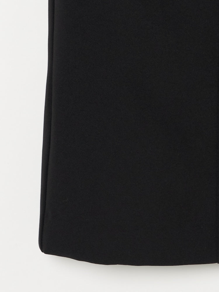 女性らしいウエストデザインと、身体に沿う美しい落ち感が特徴です。158cmで足首くらいの丈感になります。くびれが目立つ体型の方は少し下げて腰位置で着用するとデザインが最も映えると思います。同生地のジャケットとセットアップで着用すれば、オケージョンシーンにも対応するシックな印象に仕上がります。