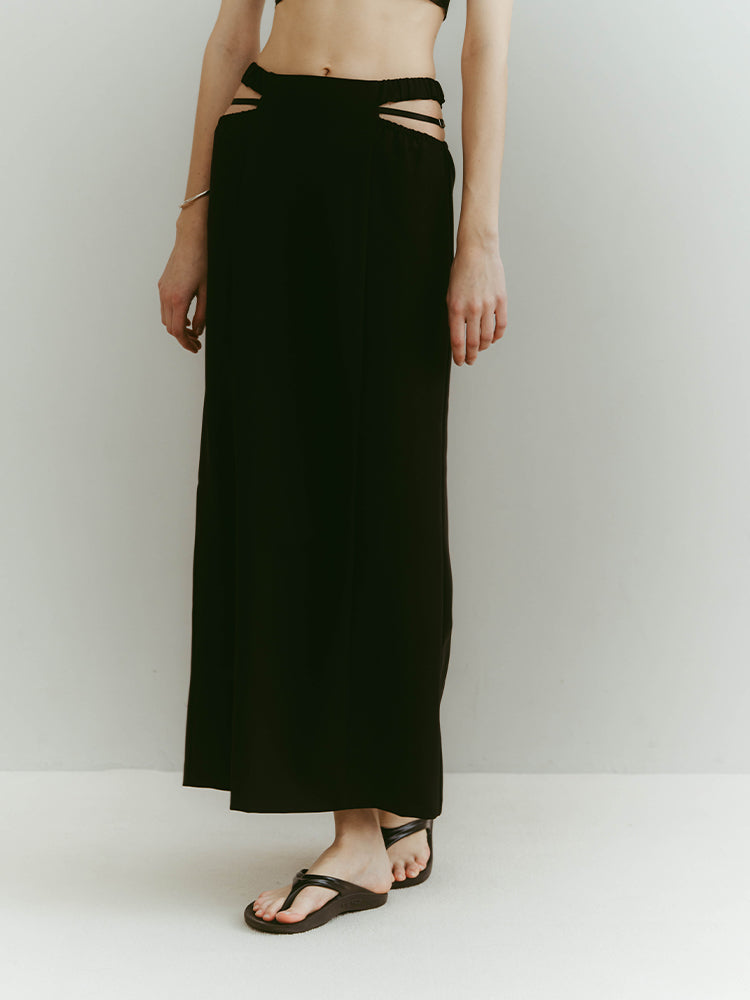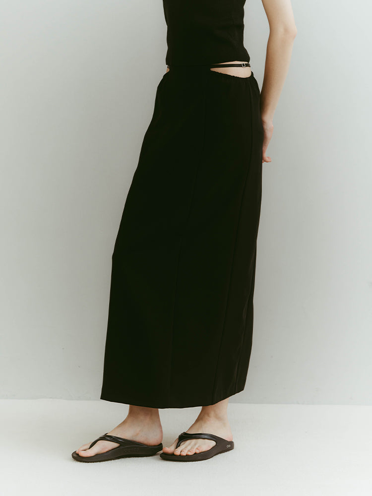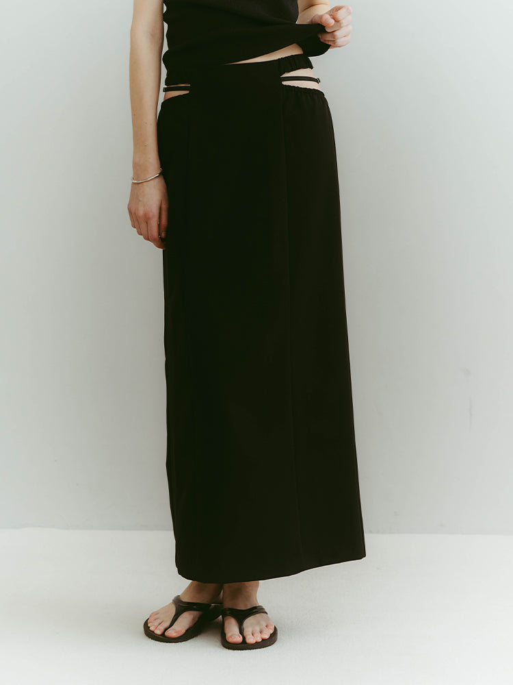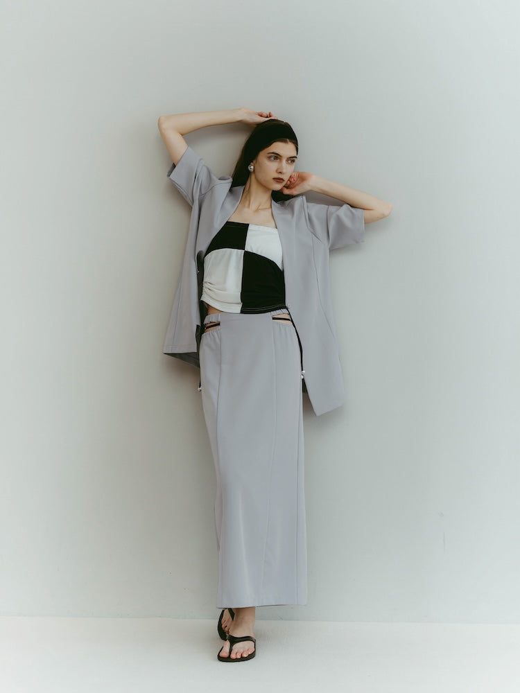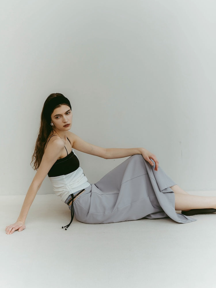 スポーティーなエッセンスと凛とした女性らしさ。一見相反する要素を重ね合わせたデザインスカート。