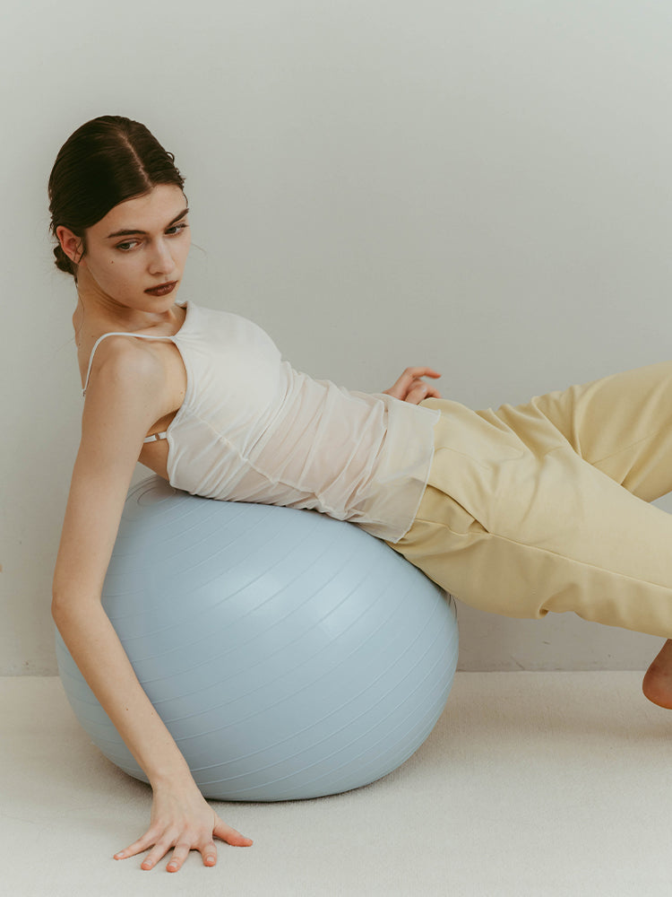 ベロアとシアーの異素材を組み合わせた、バックオープンデザインの女性らしい一枚。カップ付きでアンダーのアジャスター調整も可能なため、安定感のあるインナーとして機能します。私は痩せ型で全体的にゆとりがありますが、アジャスターのおかげで1枚で着用しても問題ないです。重ね着のアクセントとしてもおすすめです。