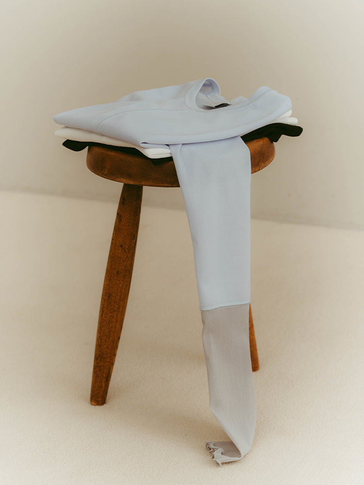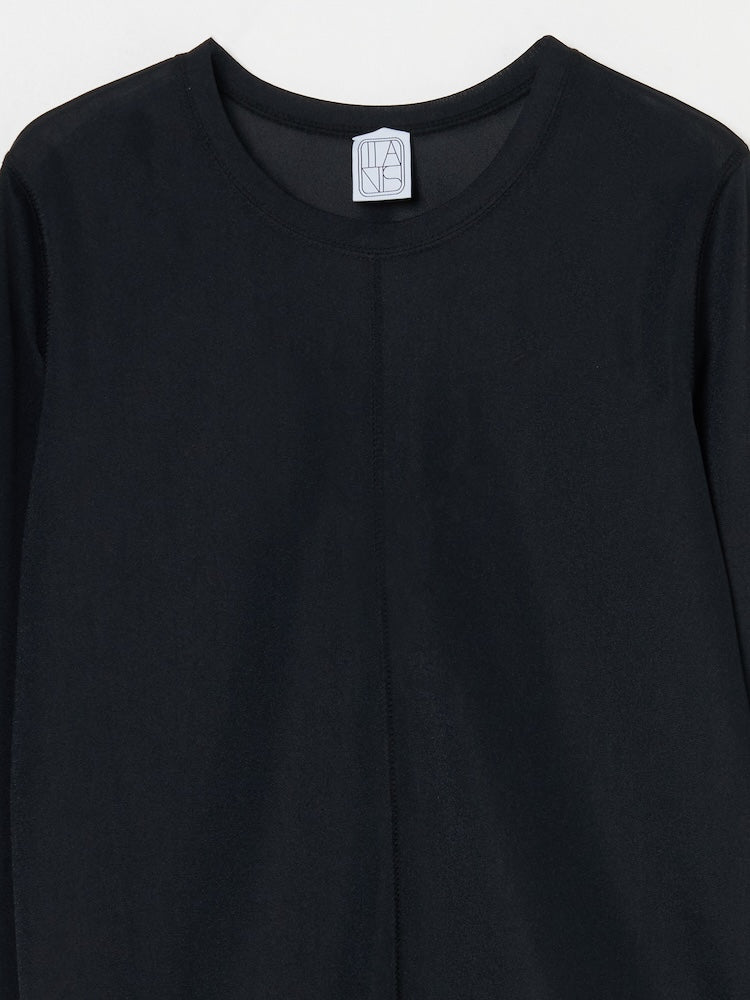 透けすぎず、身体のラインを強調しすぎない絶妙なシアー感と、ほのかな光沢が肌を美しく演出。大人の装いにふさわしい品格のある一枚に仕上げました。