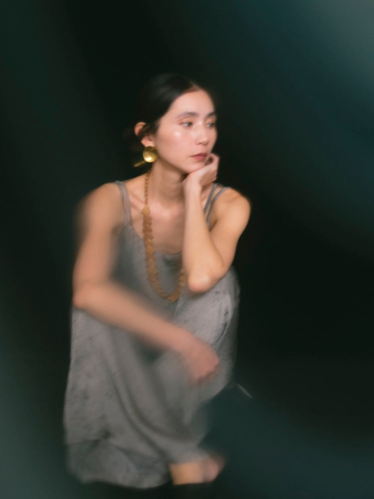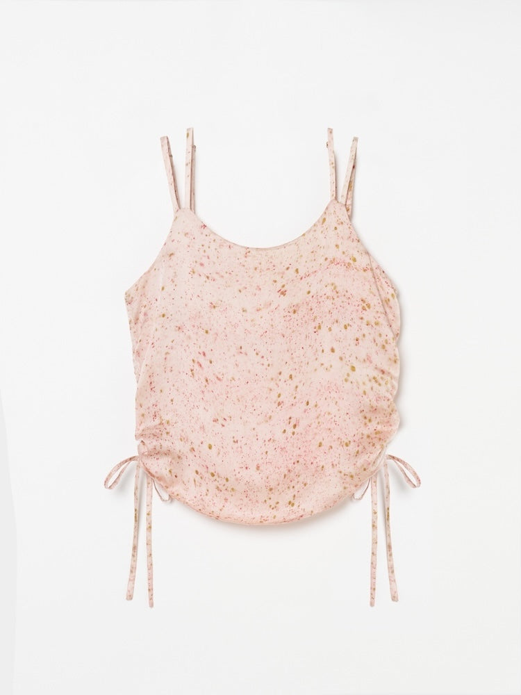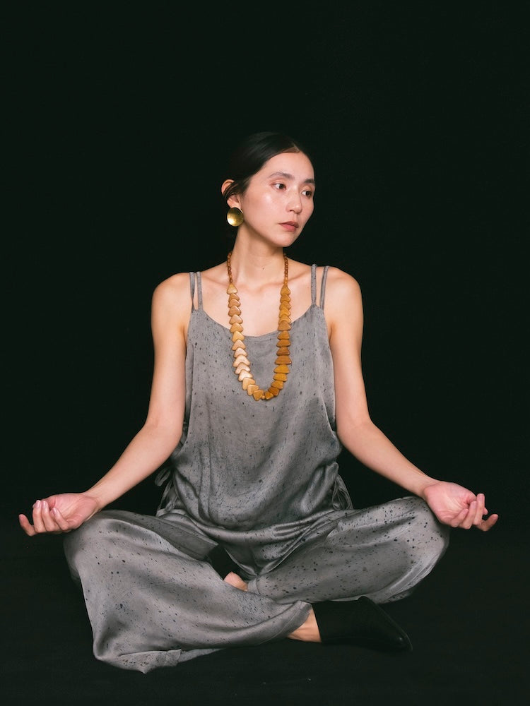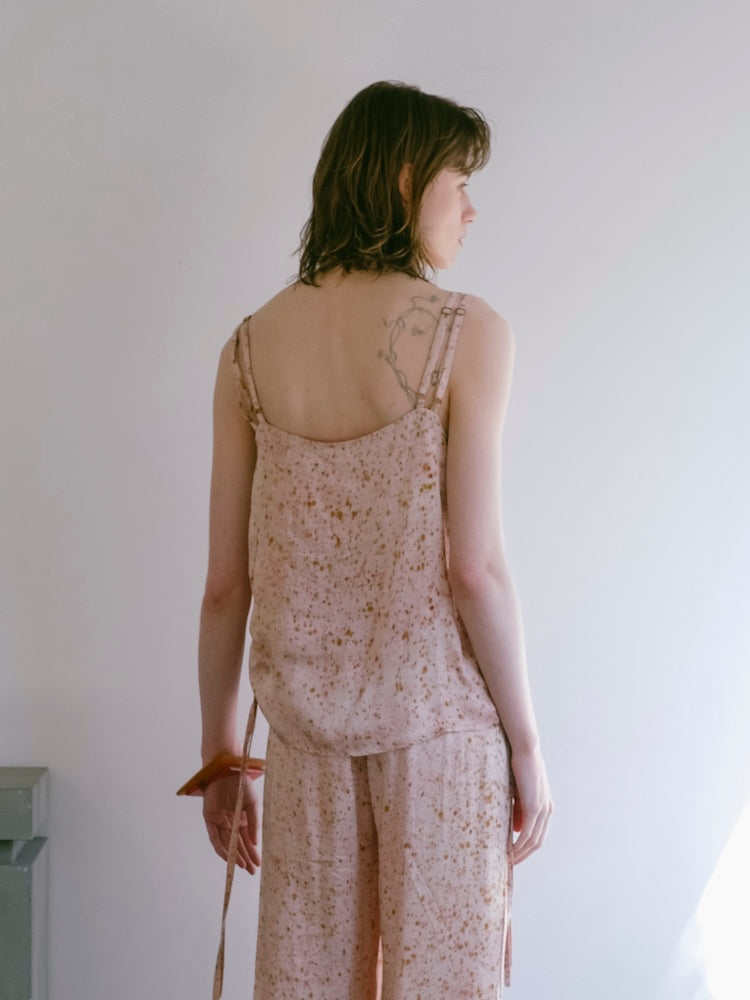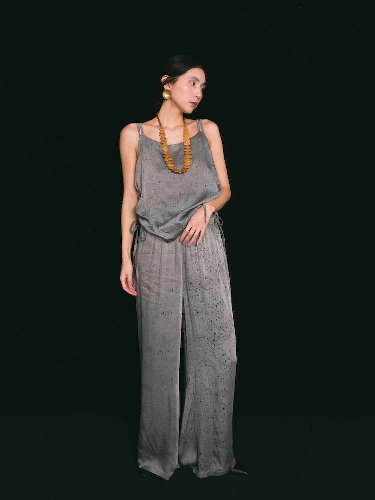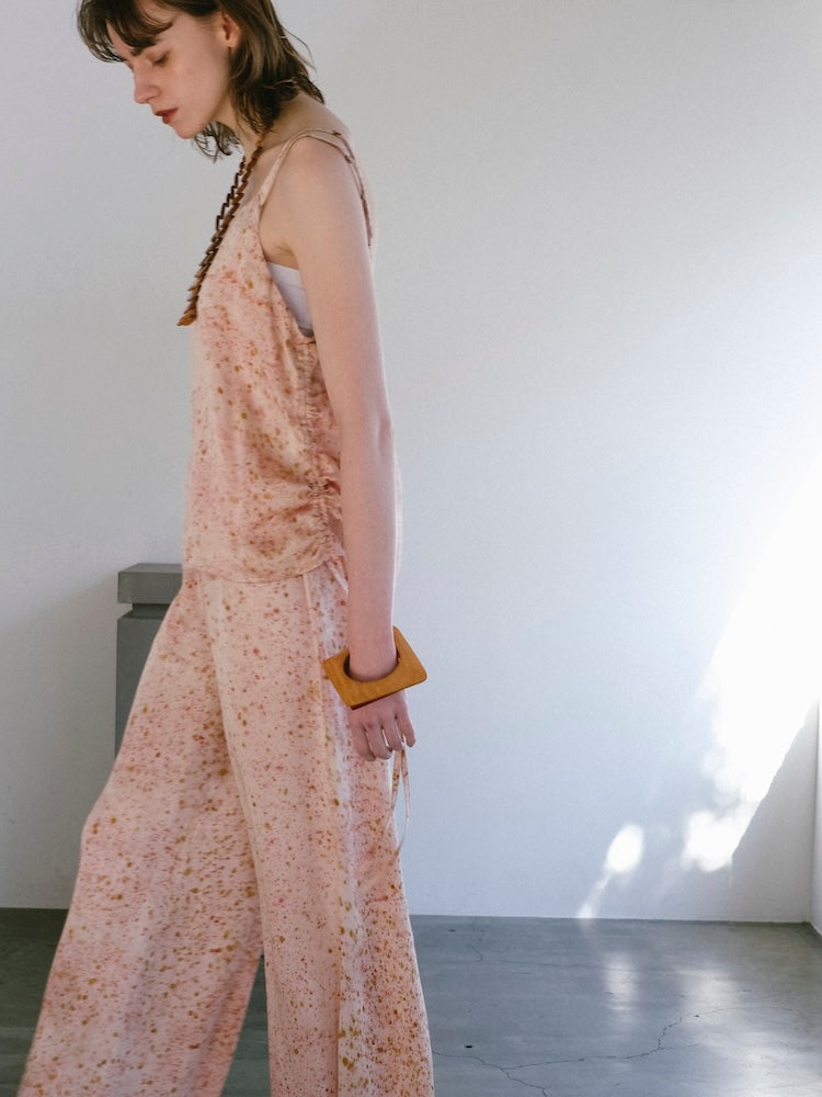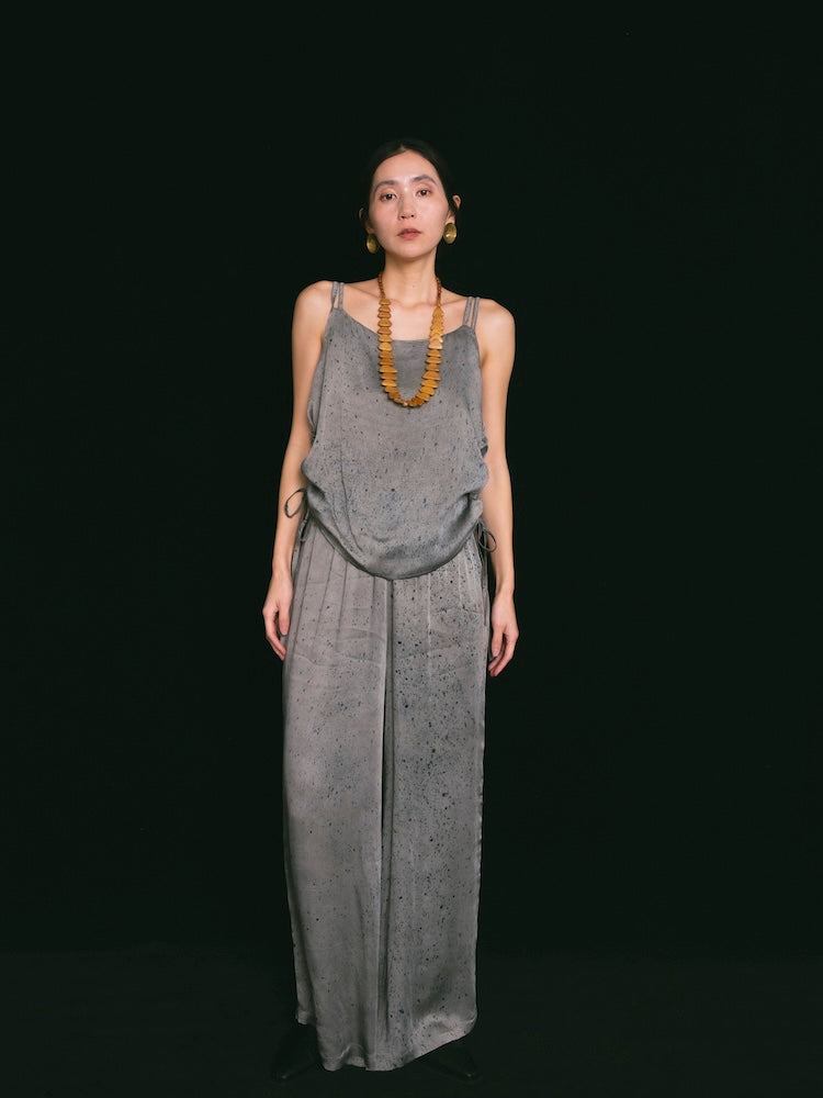 ヴィーガンシルクならではのとろみと、美しく流れる落ち感が魅力のギャザーキャミソール。